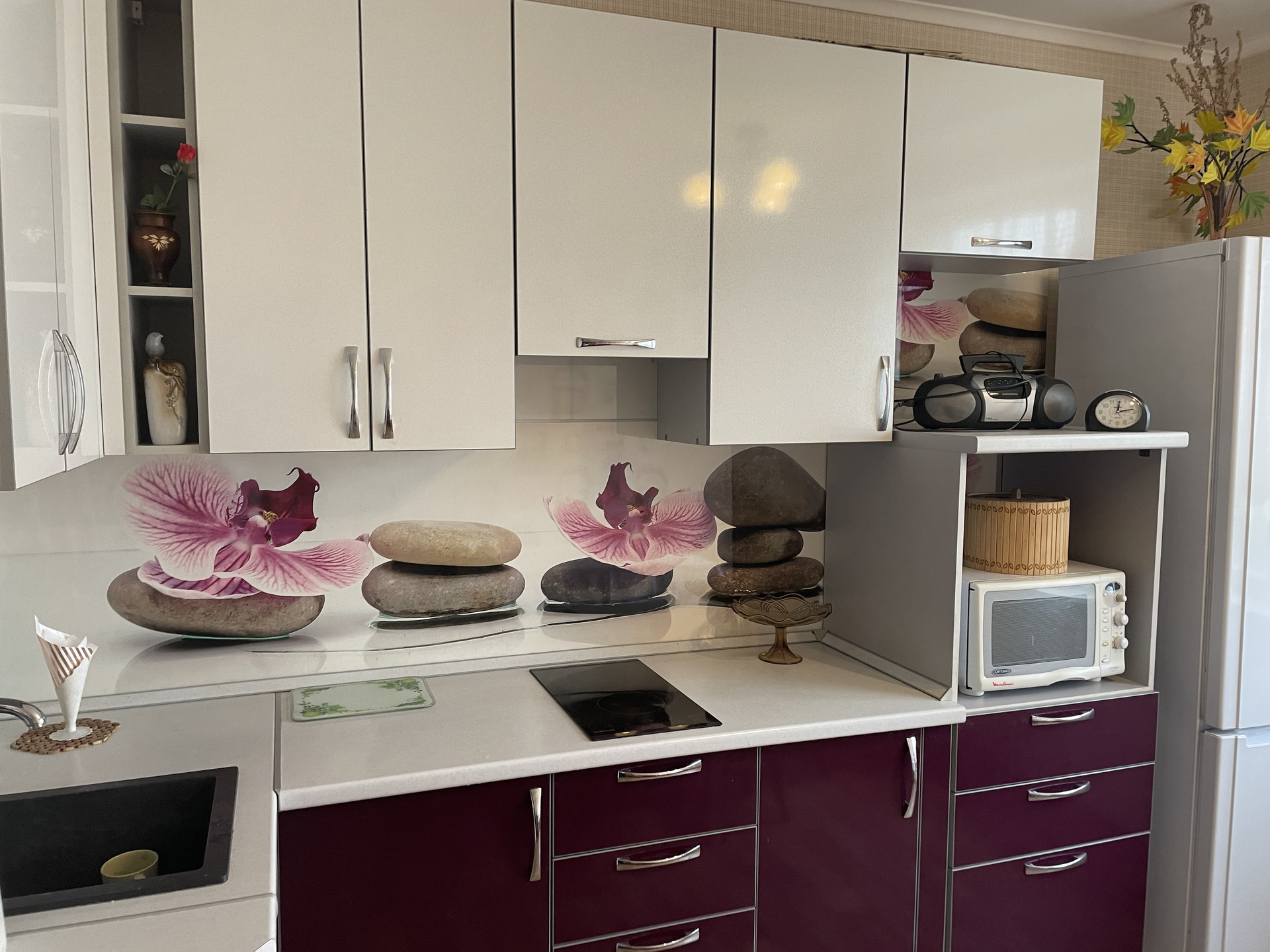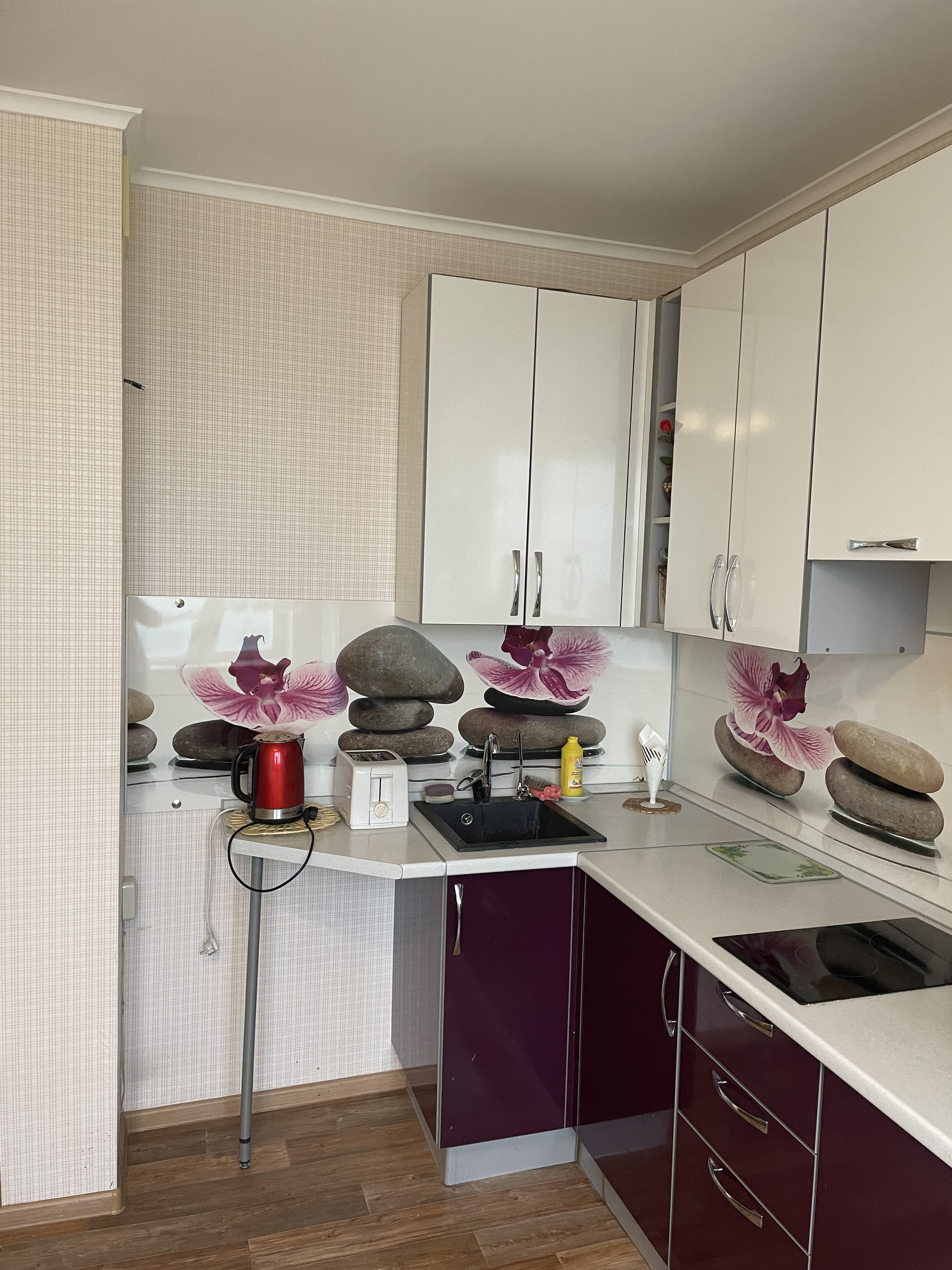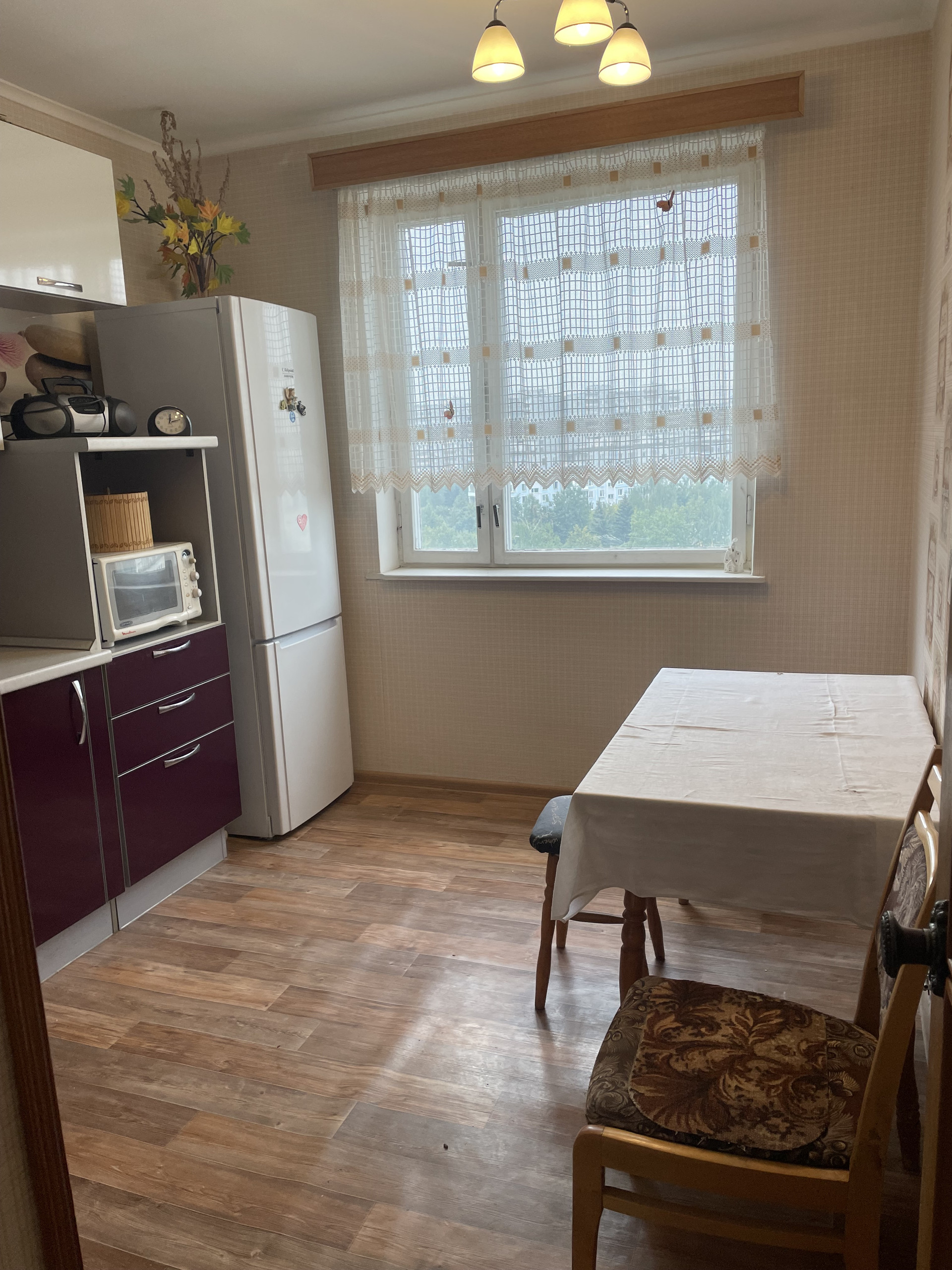В квартире в 2017 году был выполнен полный косметический ремонт(покраска потолков, замена кухни на новый гарнитур, оклейка стен обоями, межкомнатные двери из натурального дерева, напольное покрытие - итальянский ламинат, в малой спальне родной паркет, в кухне линолиум, частичная замена сантехники в ванной комнате, установка системы очистки воды.