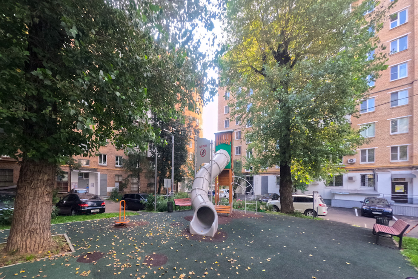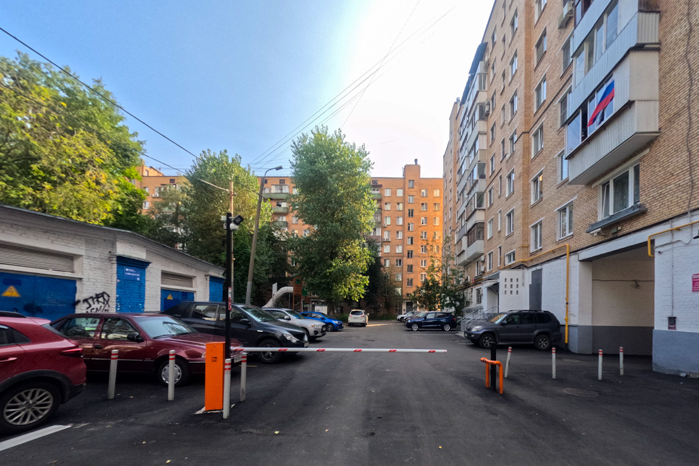 Двор закрыт шлагбаумом, во дворе всегда есть парковочные места.
