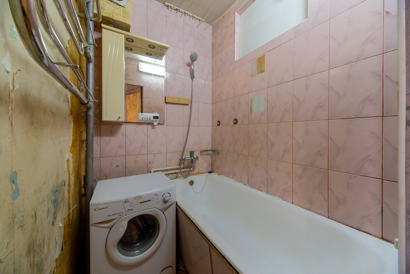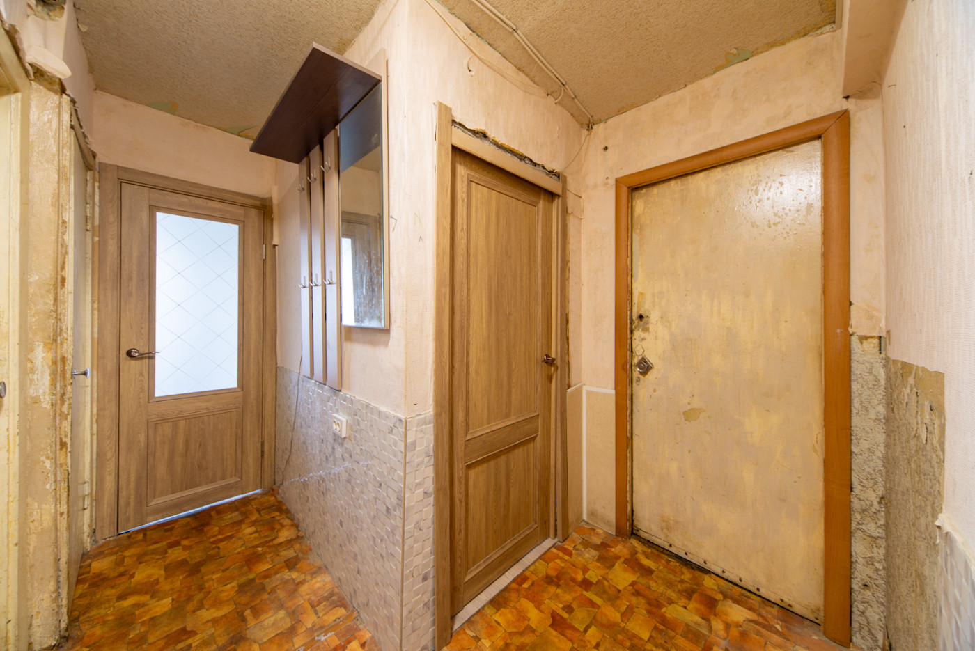 КВАРТИРА требует ремонта. 3 комнаты (18+14+10 кв.м). Две комнаты изолированные и одна смежно-изолированная, правильной формы, планировка - "распашонка". Кухня, маленькая комната и большая комната на северо-восток, средняя комната на юго-запад. кухня - 6,5 кв.м; сан.узел с ванной - раздельный. Имеется балкон.