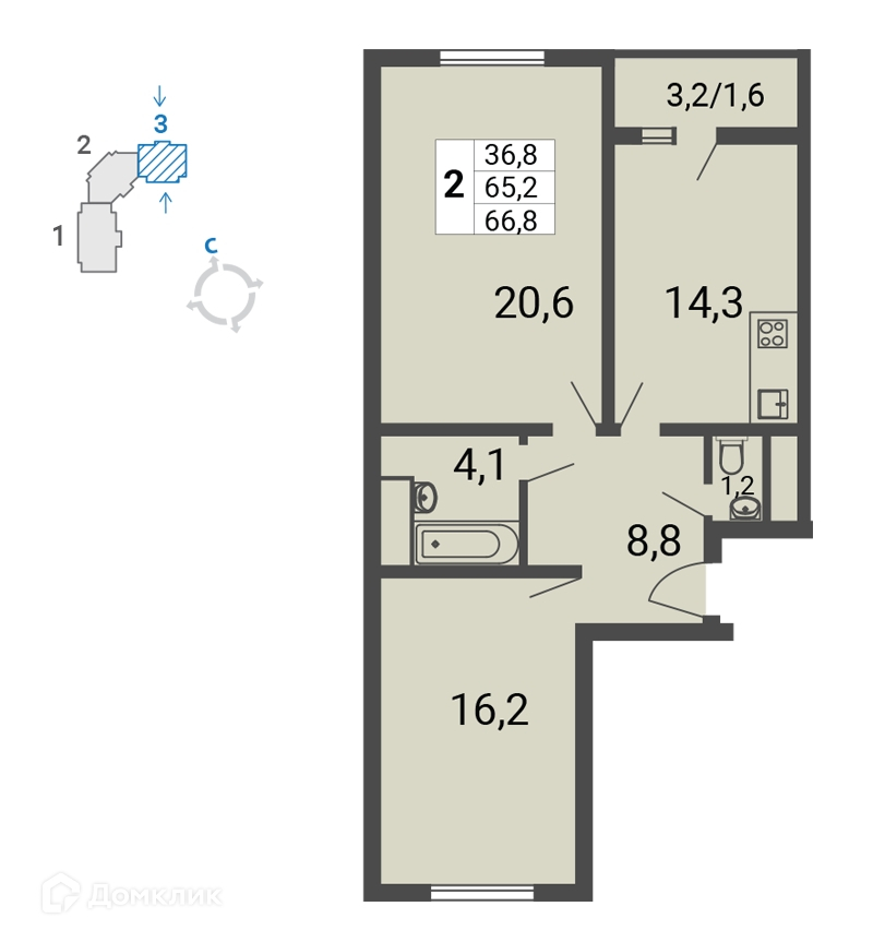 Общая площадь 66.8 м2