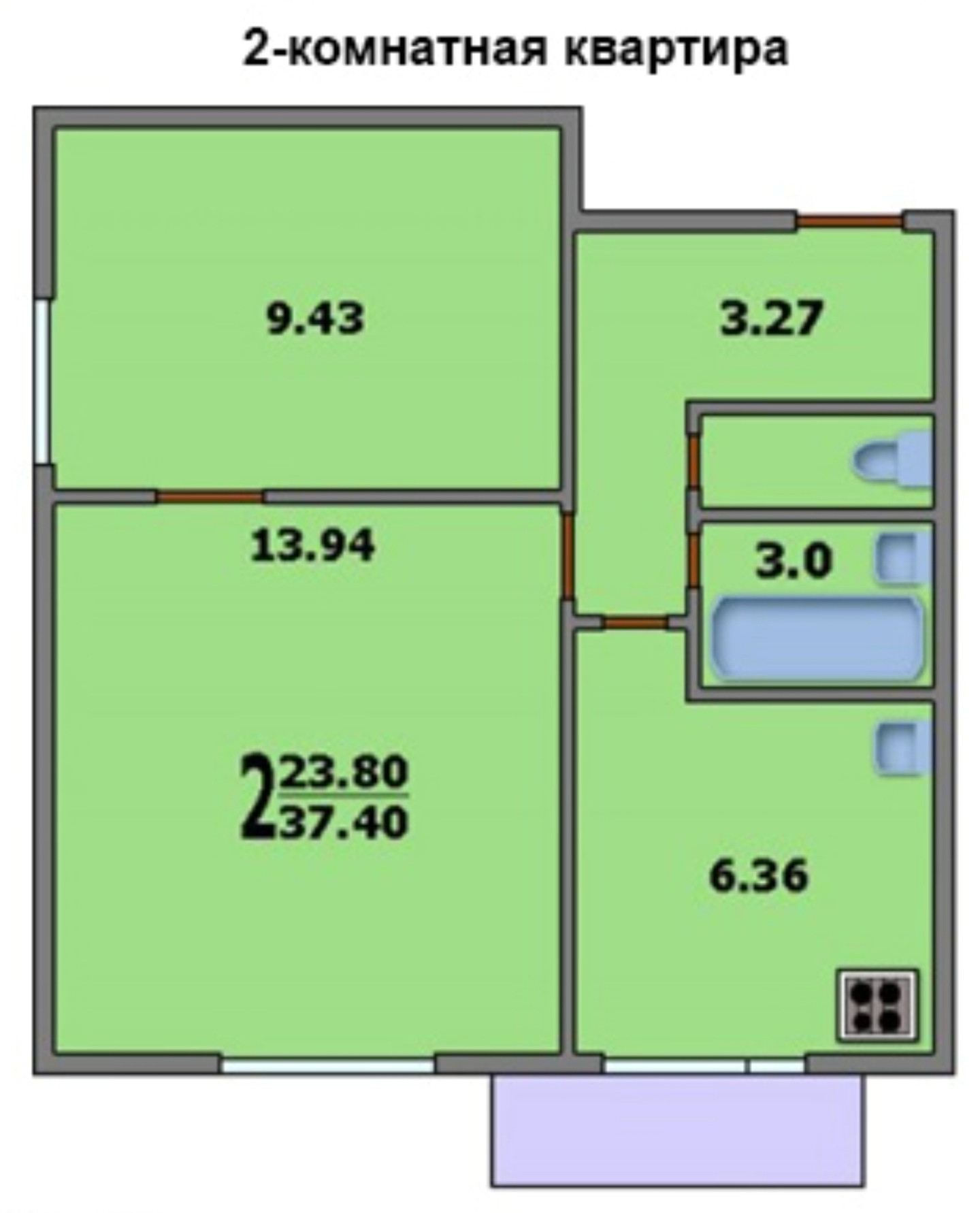 Общая площадь 38.2 м2