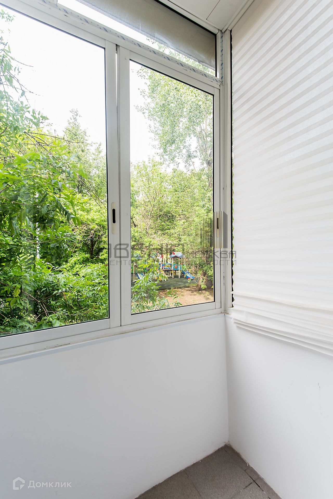 Застеклённый балкон с видом в тихий двор.