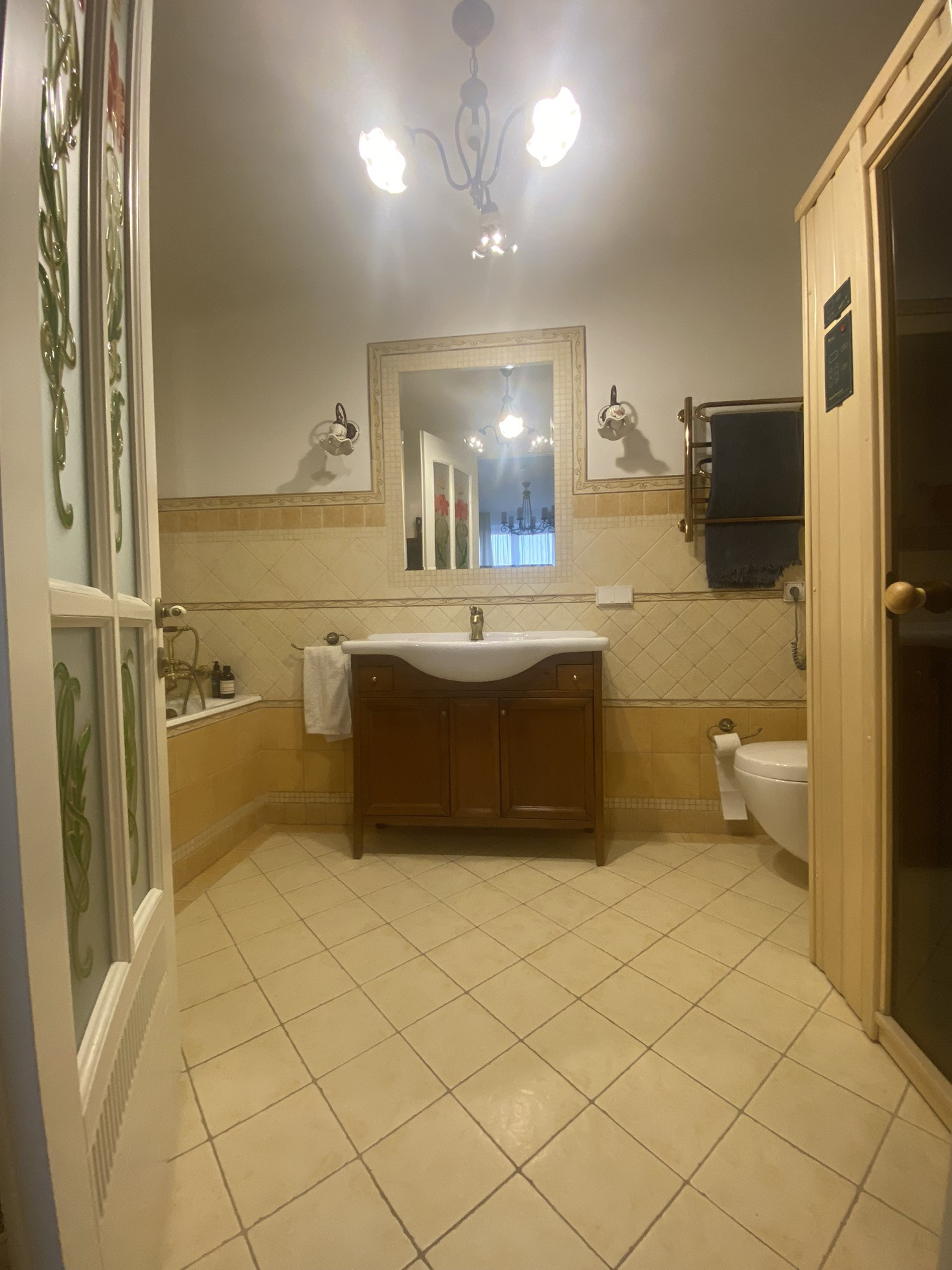 Приватная зона: 3 изолированные спальни: мастер - спальня со своим санузлом с ванной и сауной + 2 спальни, гардероб.