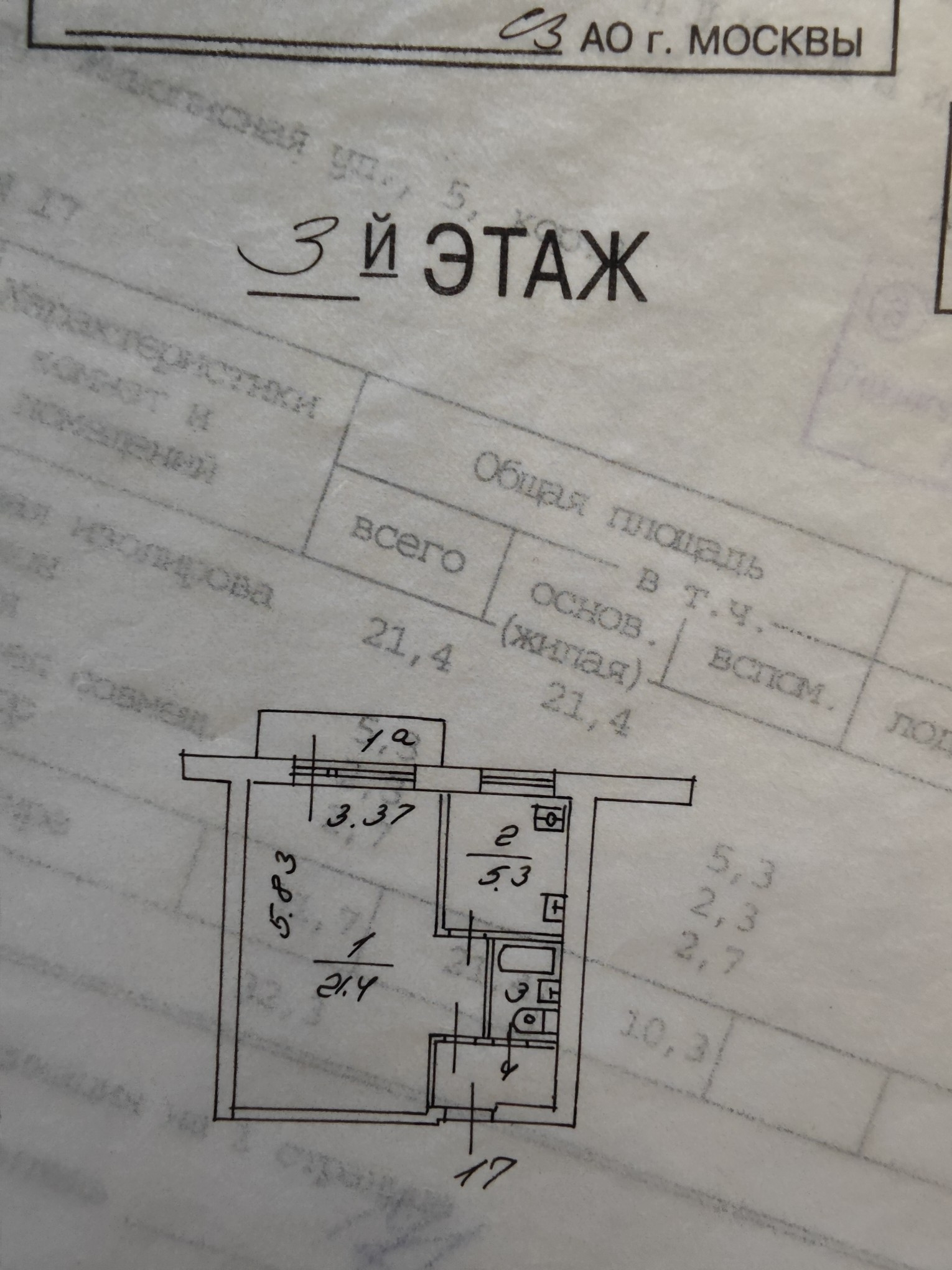 Жилая площадь 21.4 м2