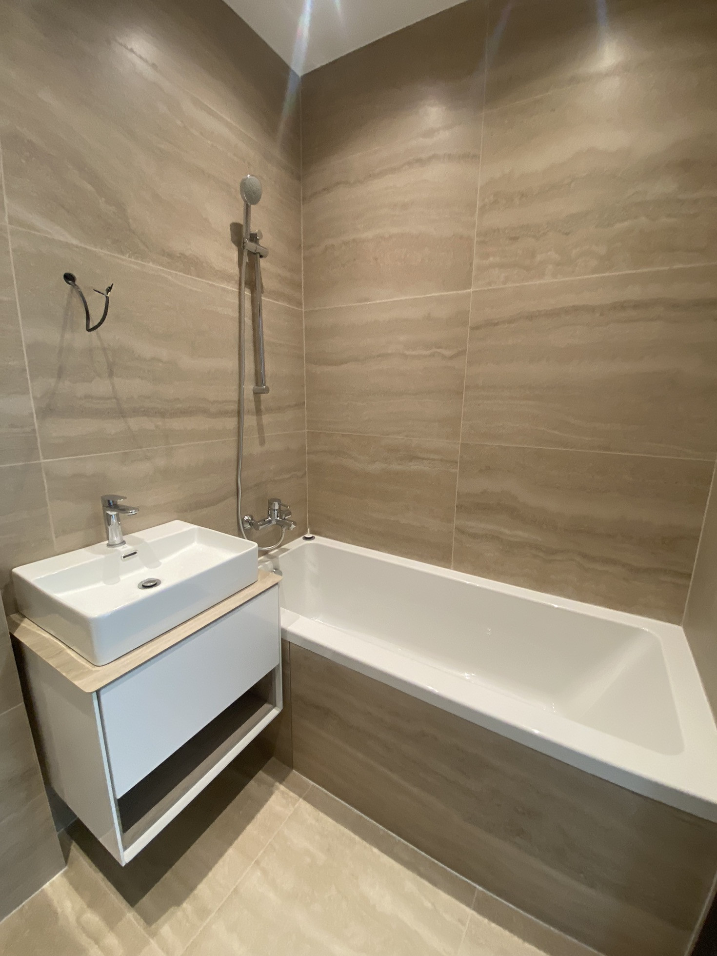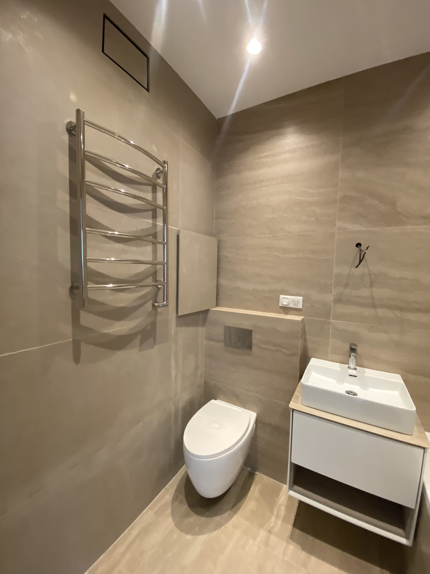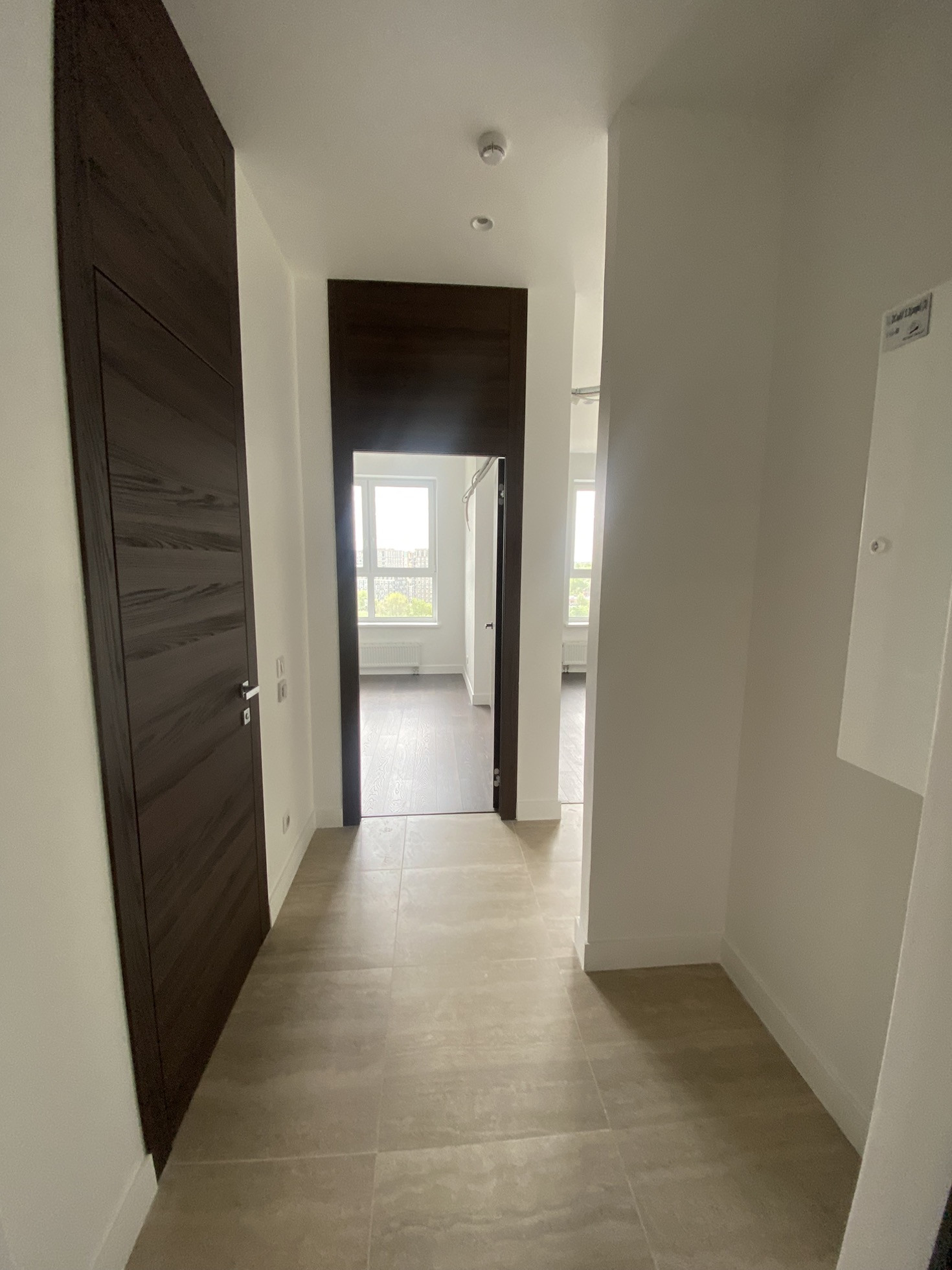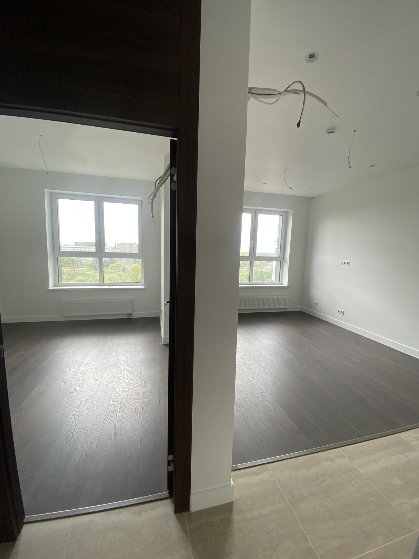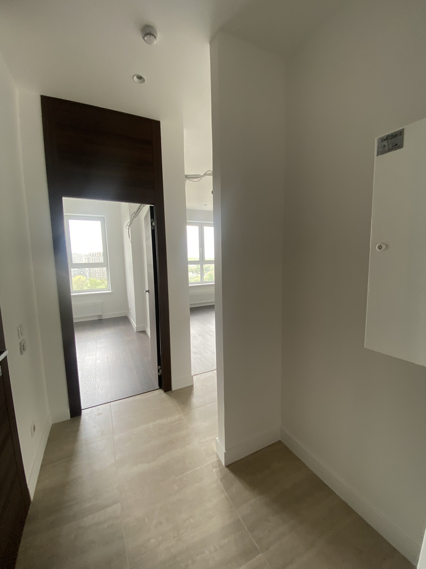 Квартира продаётся с отделкой в стиле «Модерн». Стены покрашены, полы ламинат, сделана электроразведка, установлены розетки и выключатели. Санузел плитка, установлены сантехнические приборы, полотенце сушитесь, теплые полы. В квартире установлены входная и межкомнатные двери.