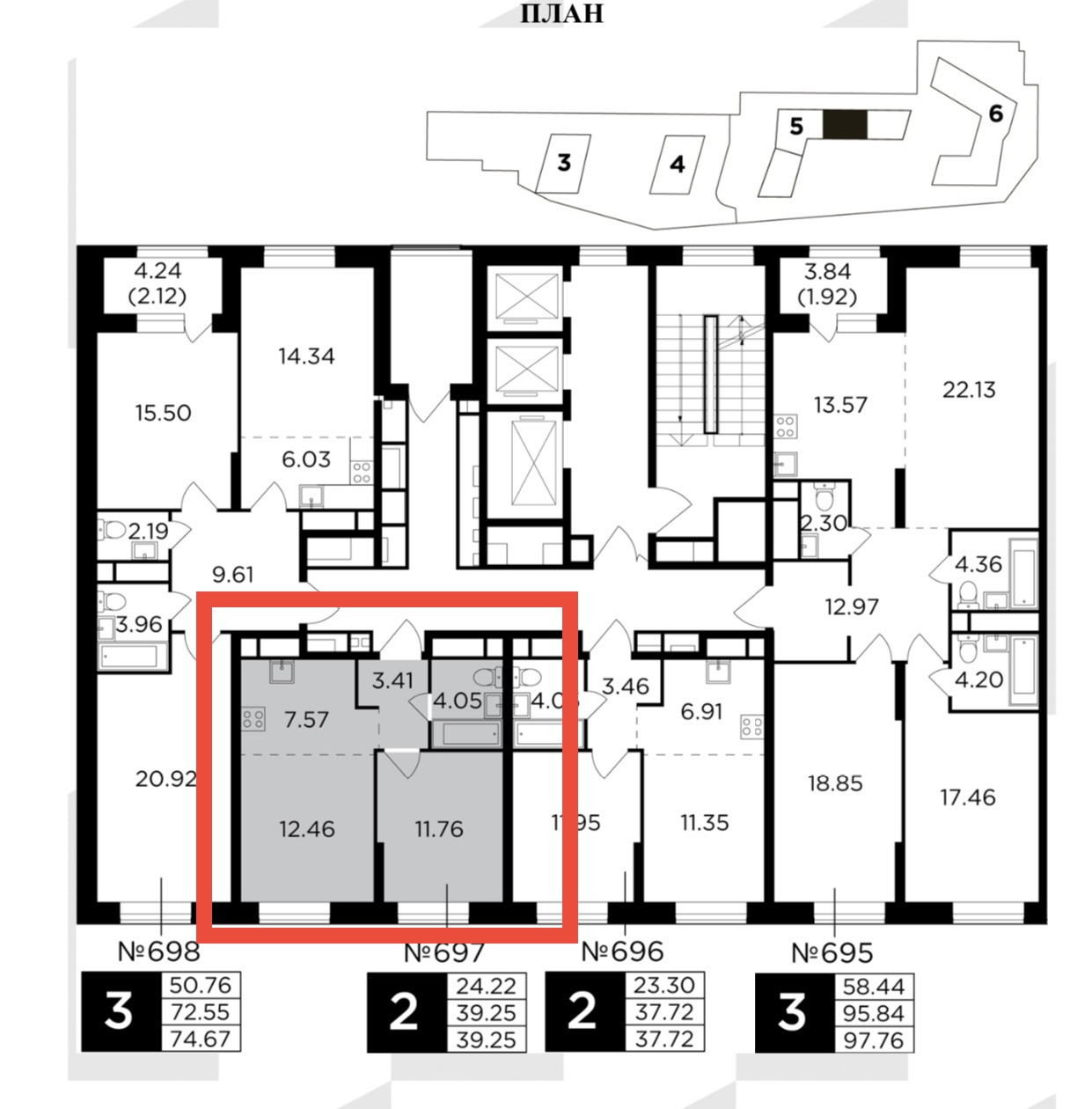 «КутузовGRAD 2”, общей площадью 39,3 кв. м, расположена в 5 корпусе на 11 этаже.