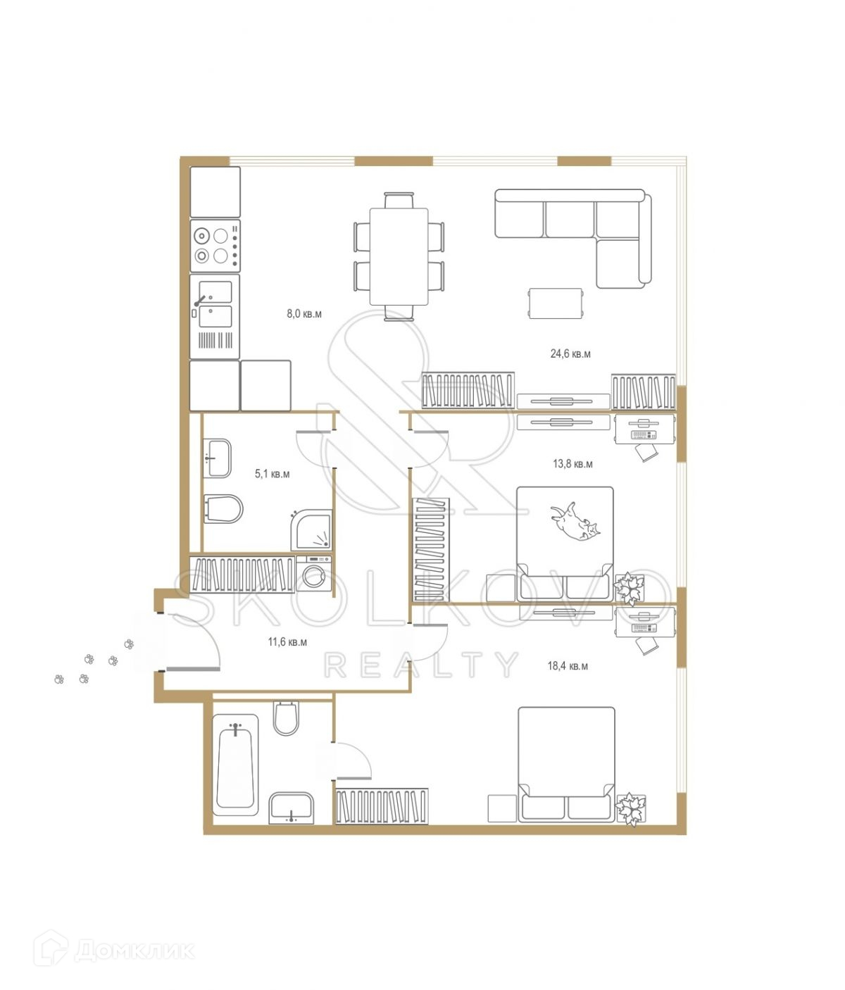 В ЖК "SLAVA" в корпусе B6 продаётся 3-комнатный апартамент общей площадью 85,4 кв. м.