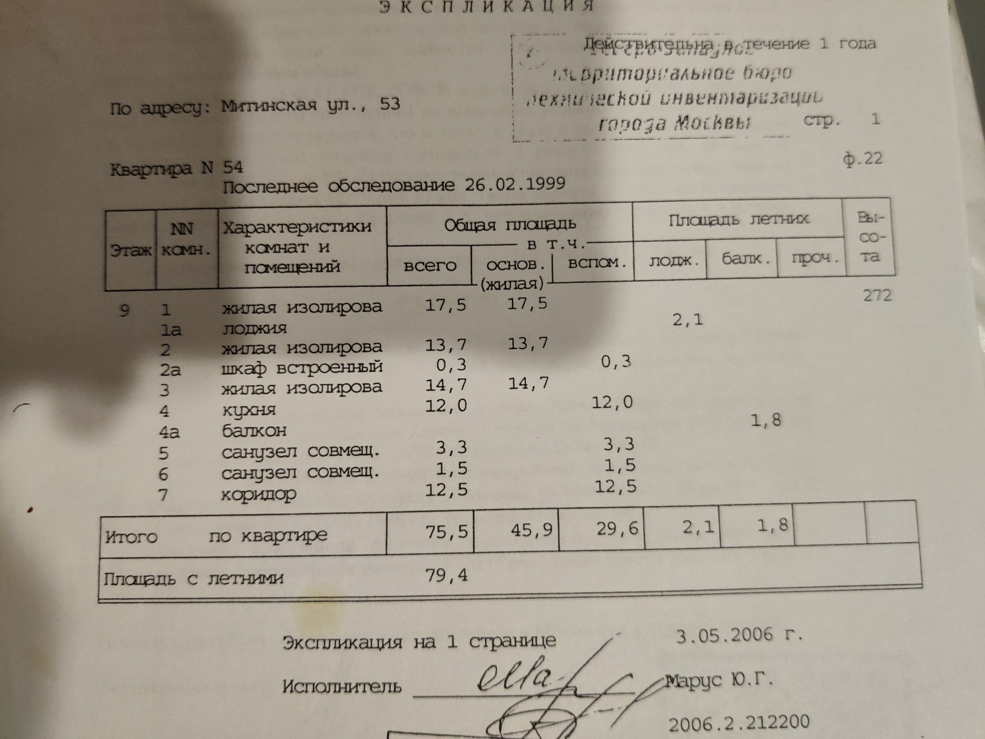 Общая площадь 75.5 м2