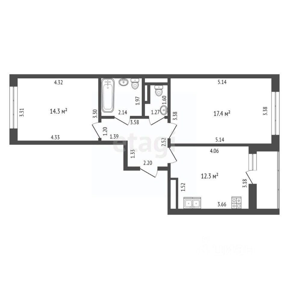Общая площадь 58.1 м2