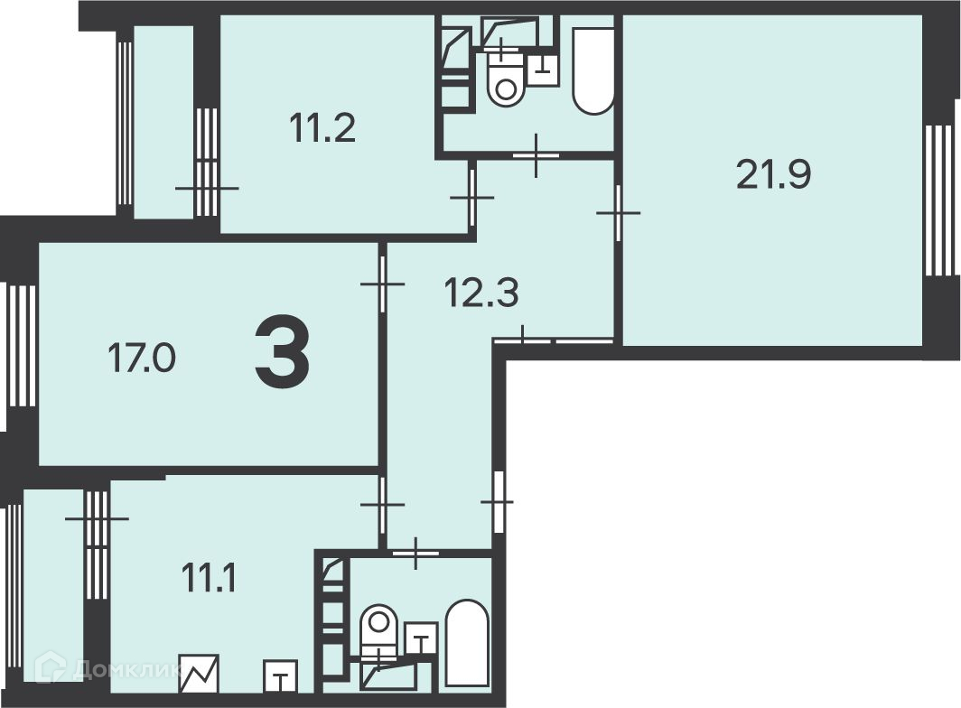 Общая площадь 80.4 м2