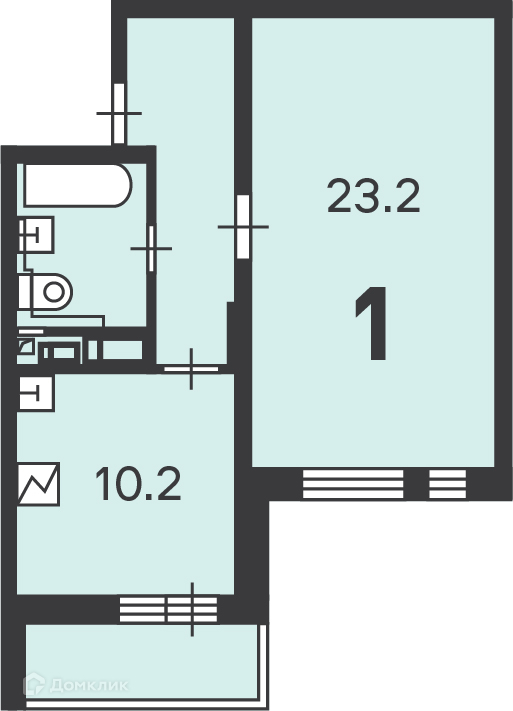 Общая площадь 44.3 м2