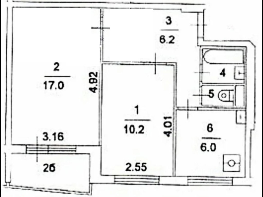 Балкон, лоджия 1 балкон