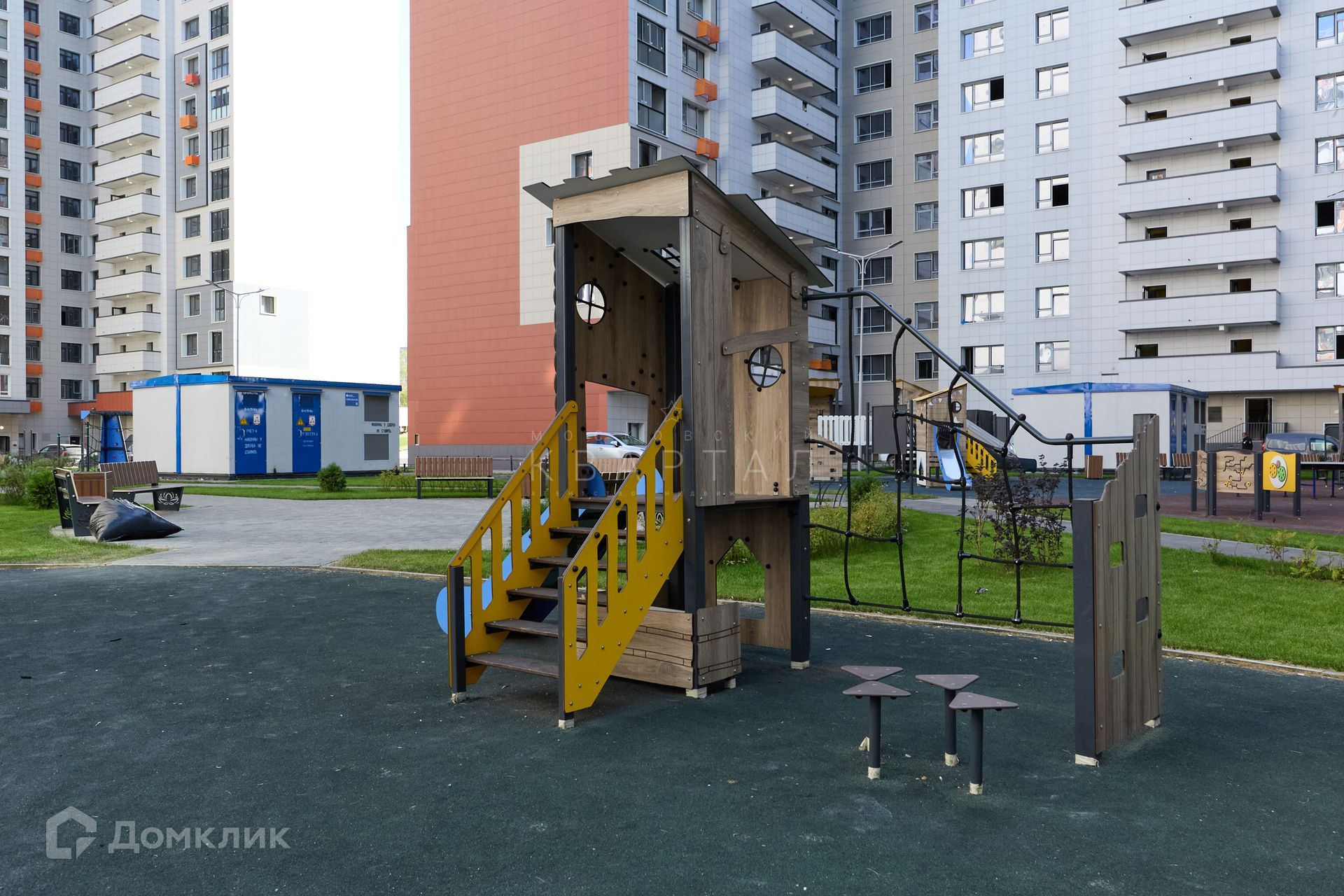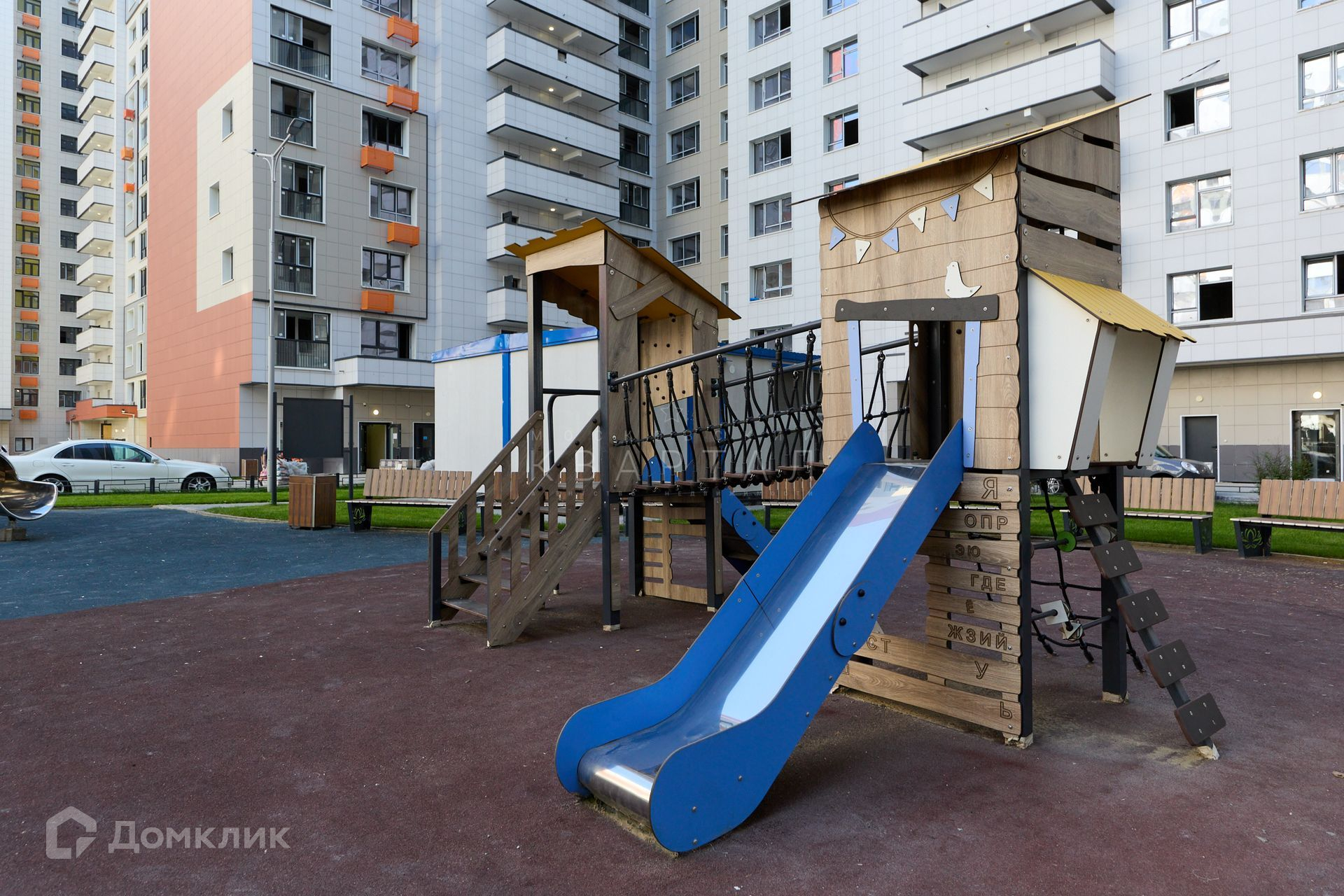 Во дворе обустроены современные детские площадки.