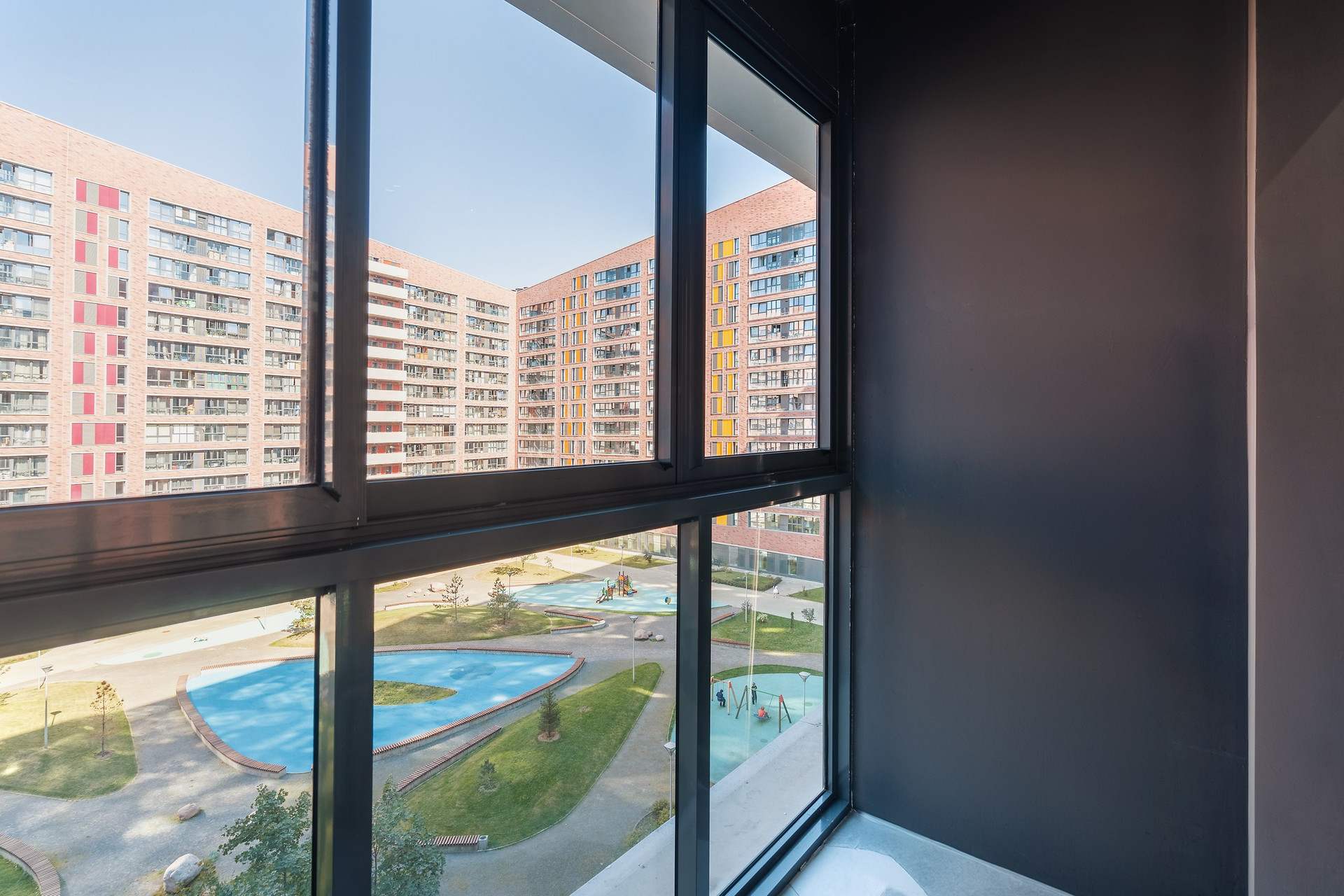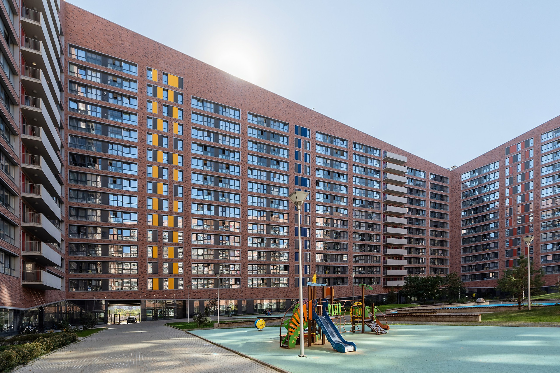 Жилой комплекс с охраняемой территорией, вход по индивидуальным электронным карточкам, въезд через шлагбаум, закрытый внутренний двор без машин, есть подземный паркинг (2 этажа). Круглосуточное видеонаблюдение, консьерж. Во дворе расположены детские площадки, ландшафтный дизайн.