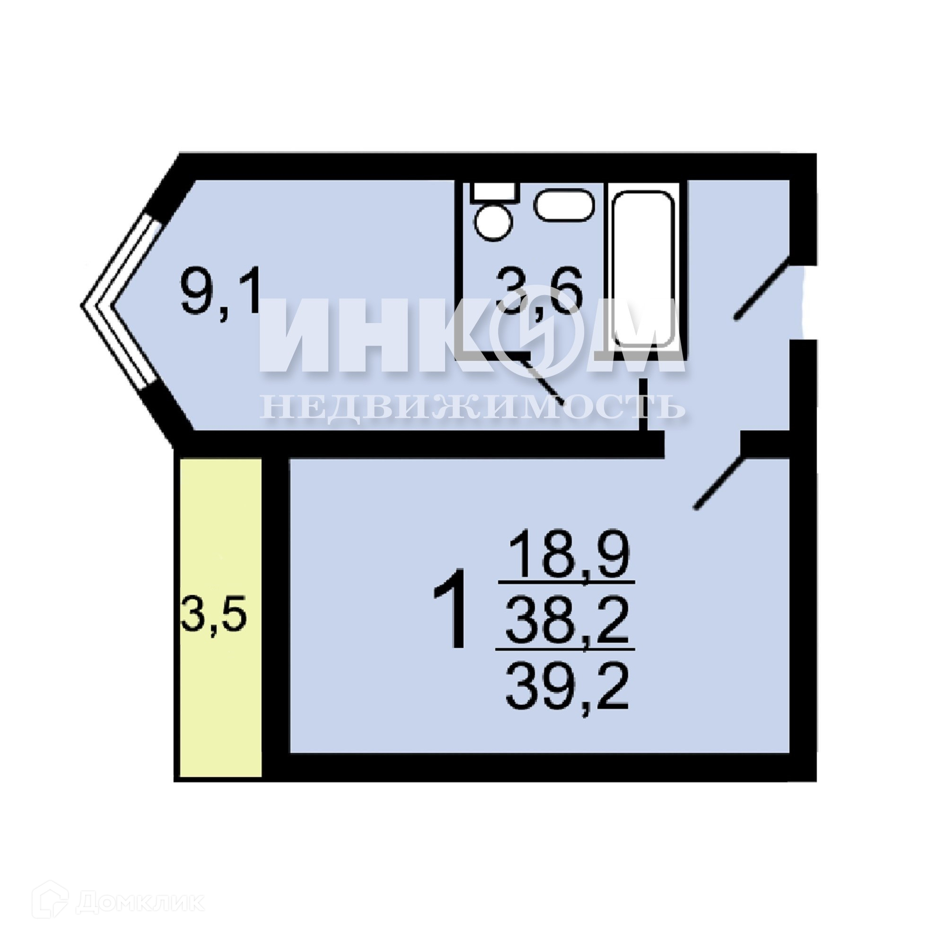 Общая площадь 38.2 м2