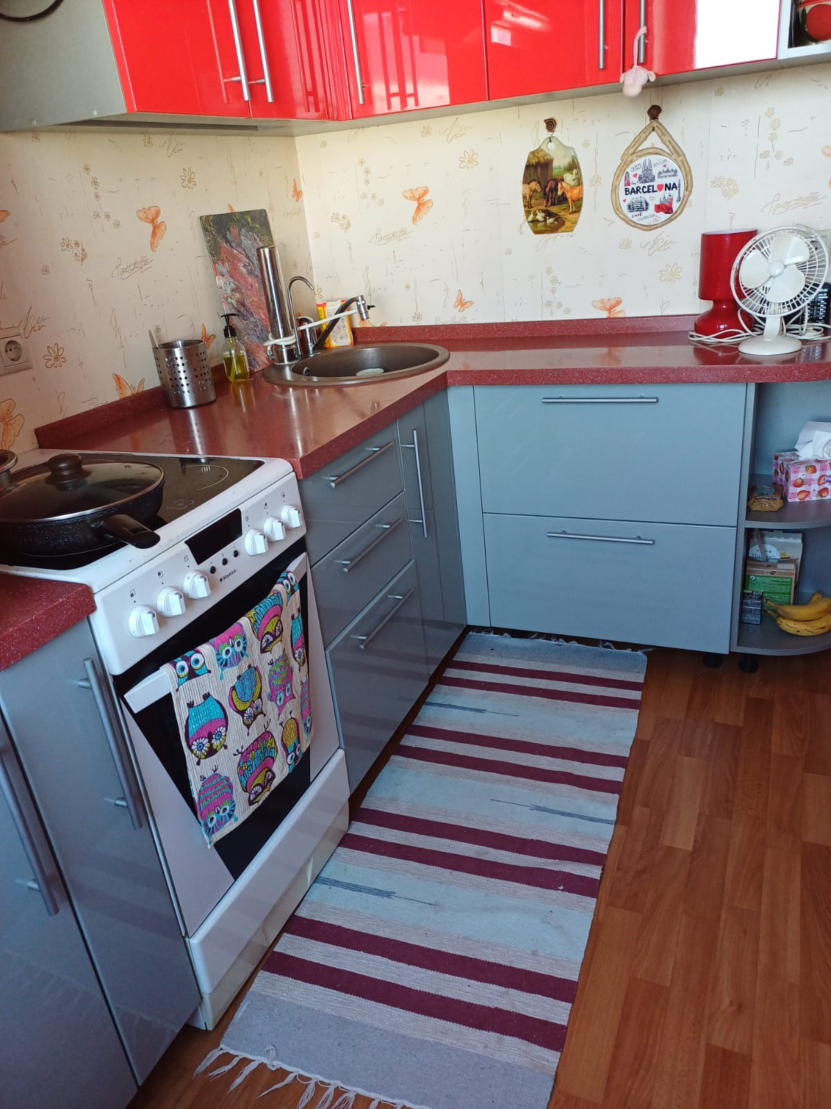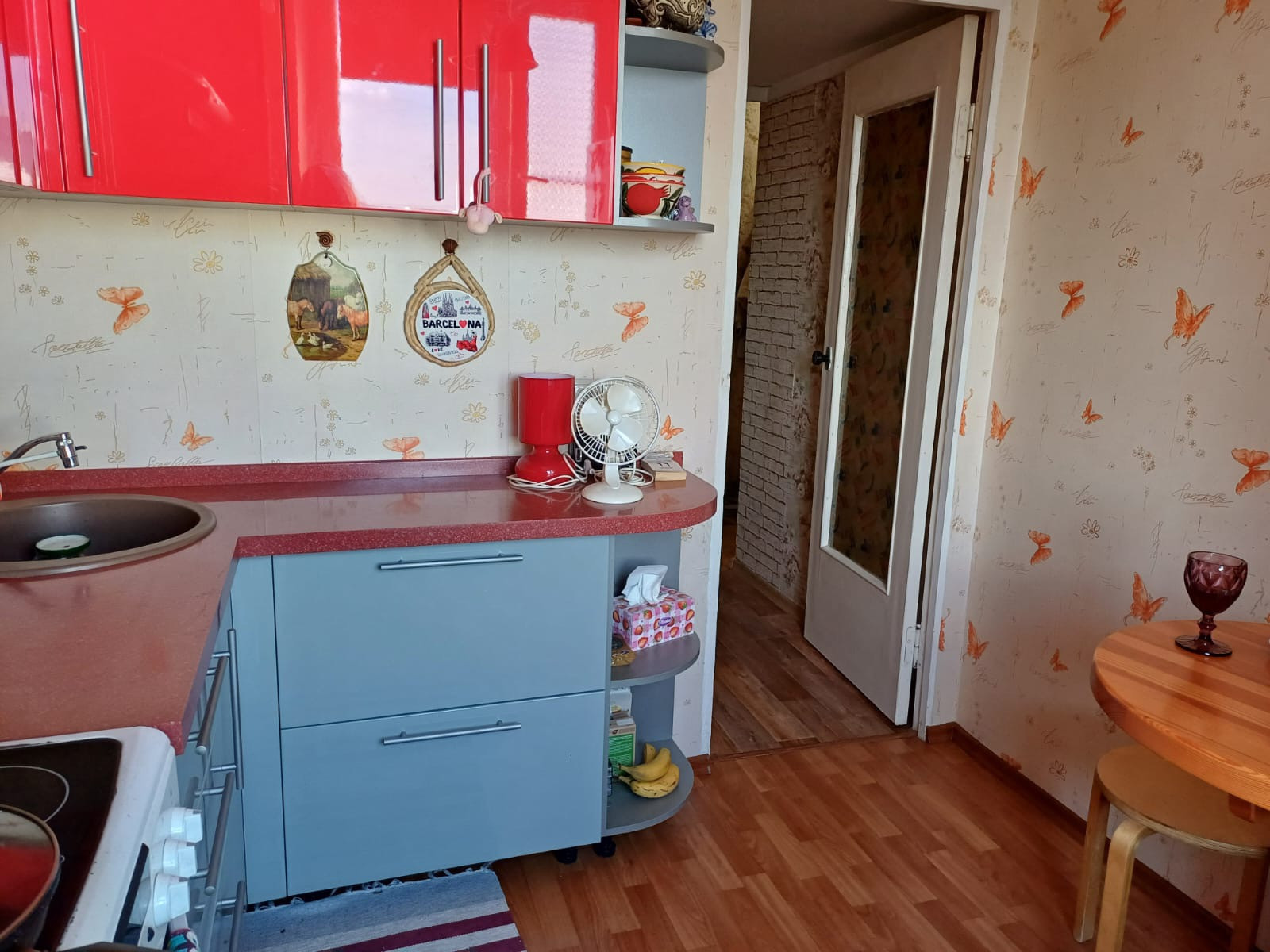 Кухонный гарнитур и мебель остаются новому хозяину.