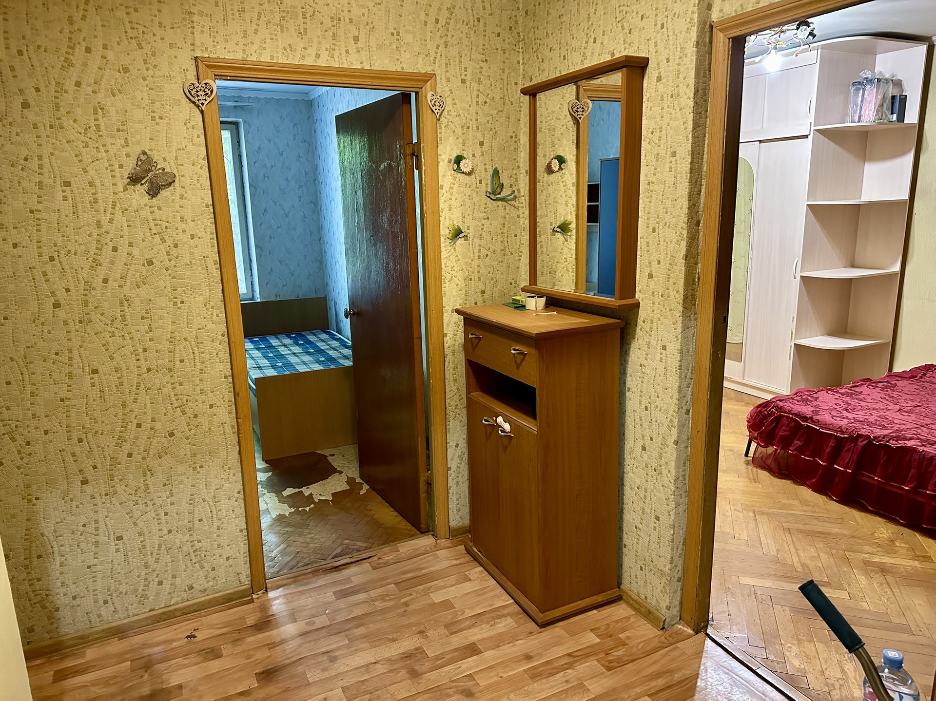 Квартира расположена на первом этаже двенадцатиэтажного дома. Жилая площадь составляет 24.6 квадратных метров, а кухня занимает 6 квадратных метров. В квартире имеется балкон, откуда открывается вид на тихий двор.