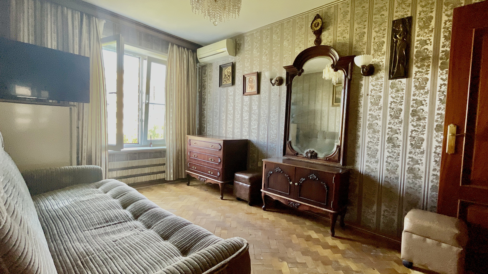 Застекленный балкон, окна ПВХ. Кондиционеры во всех комнатах. Натуральный паркет. Кухня полностью укомплектована. В квартире имеется всё необходимое для комфортного проживания.