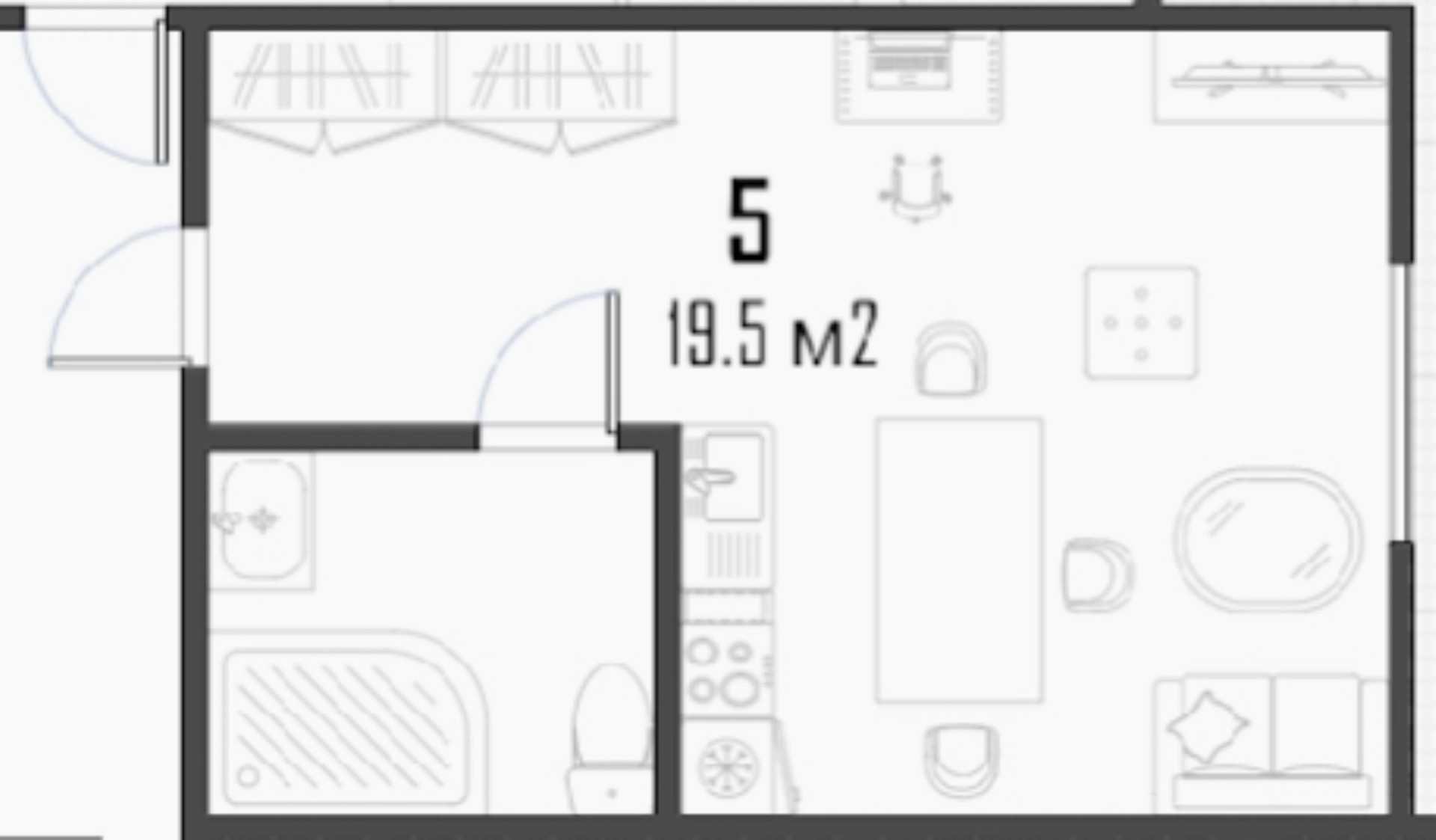 Общая площадь 19.5 м2