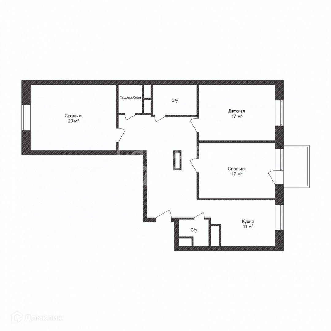 кухня 11 м2, ТРИ отдельные комнаты: гостиная 17 м2, спальня 20 м2, детская 17 м2, ДВА санузла ( с ванной, с душевой), просторная гардеробная, холл, лоджия. Вид из окон на улицу и двор.