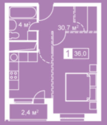 Общая площадь 36 м2