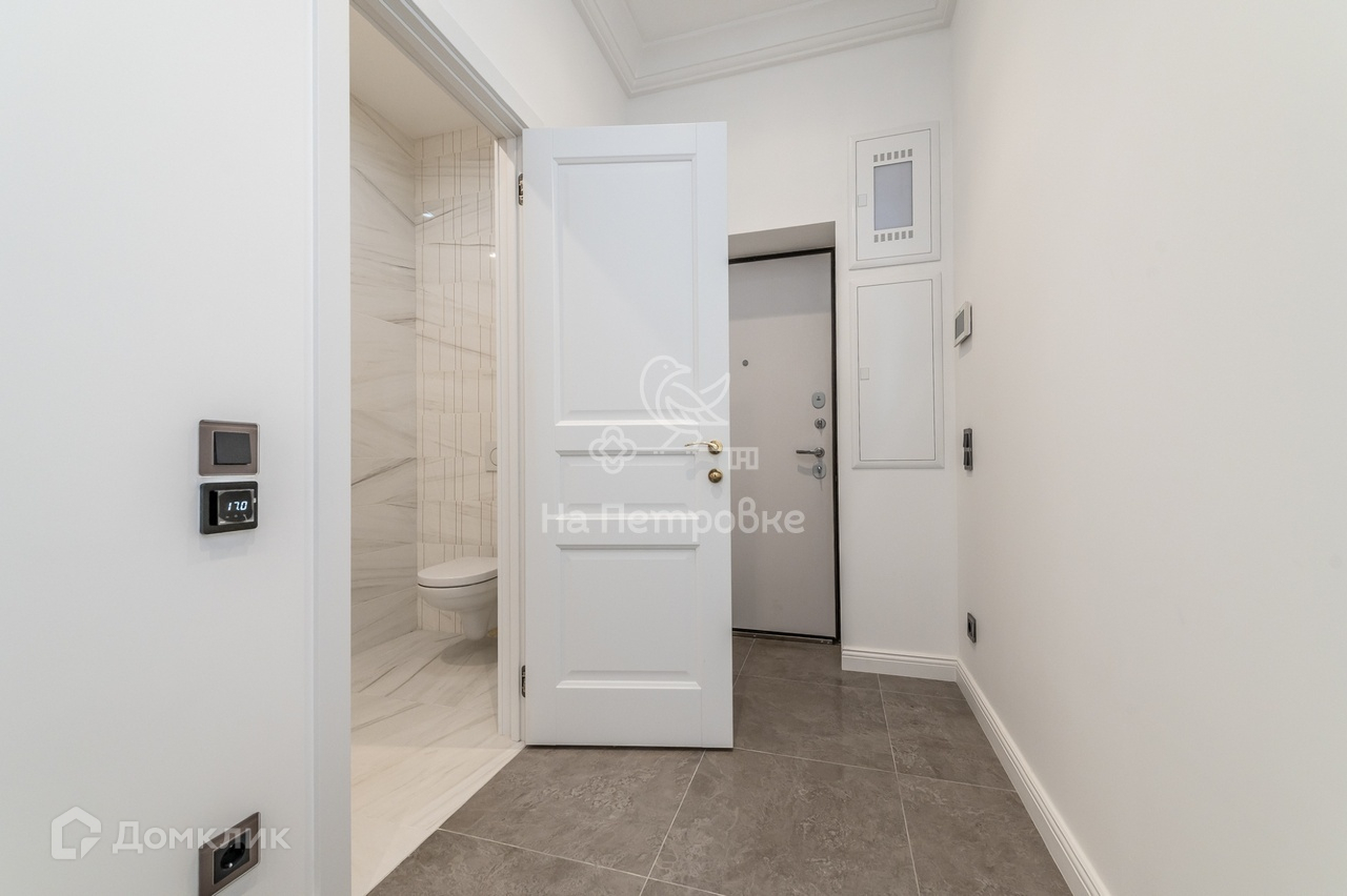 В квартире выполнена дизайнерская отделка в стиле Art Deco, использованы дорогие качественные материалы премиум-класса известных мировых производителей: паркетная плитка Kahrs, электрика Gira, сантехника Villeroy&Boch и Nicolazzi, трубы и смесители Margaroli, керамическая плитка Atlas Concorde. Система Умный дом.