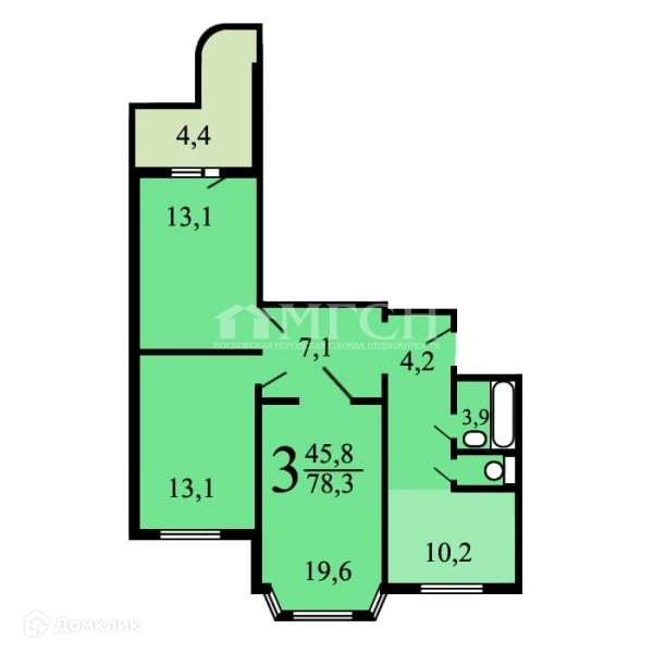 Жилая площадь 45.8 м2