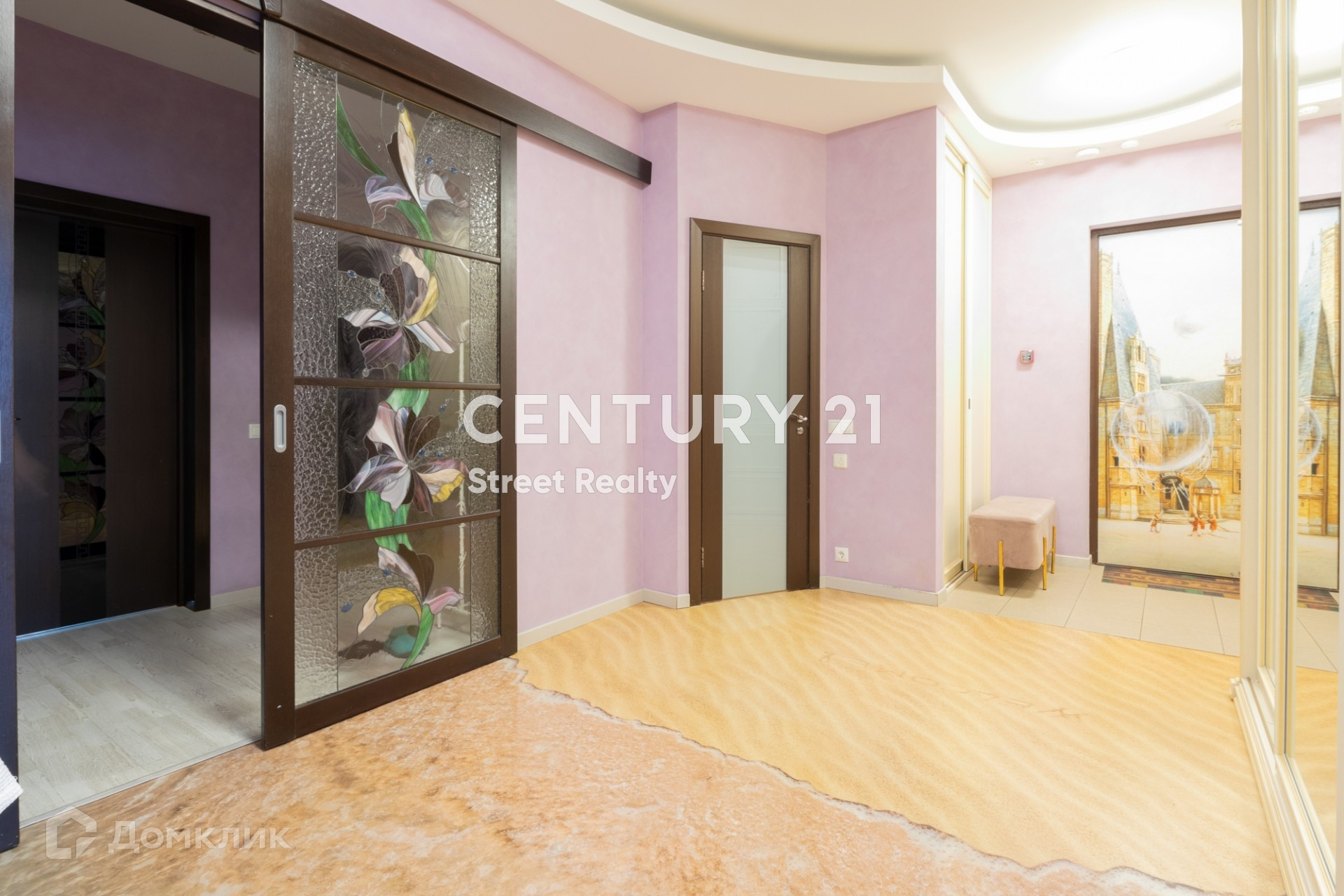 Планировка квартира включает в себя: кухню-гостиную, три изолированные спальни, отдельный кабинет, два санузла, две гардеробные комнаты.