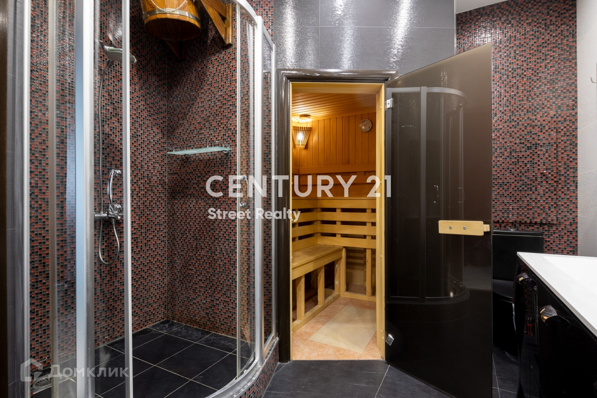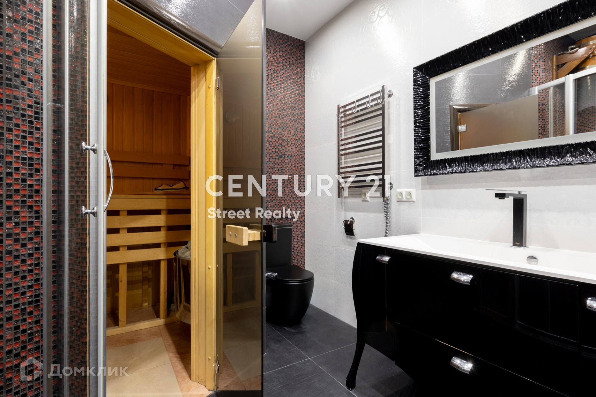 Мастер спальня имеет свою отдельную зону с двумя гардеробными комнатами, своим санузлом (с душевой и ванной), а также со своей сауной!