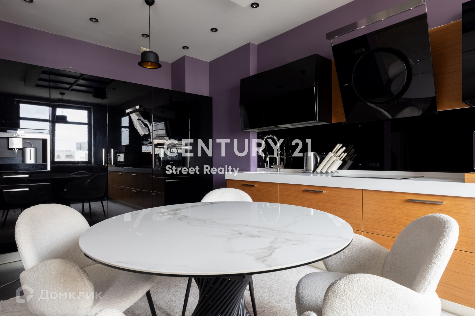В кухне встроена бытовая техника европейских производителей: посудомоечная машина Bosch, встроенная кофемашина, духовой шкаф и микроволновая печь Siemens. В гостиной комнате расположен камин, который создает приятную уютную атмосферу во всей квартире.