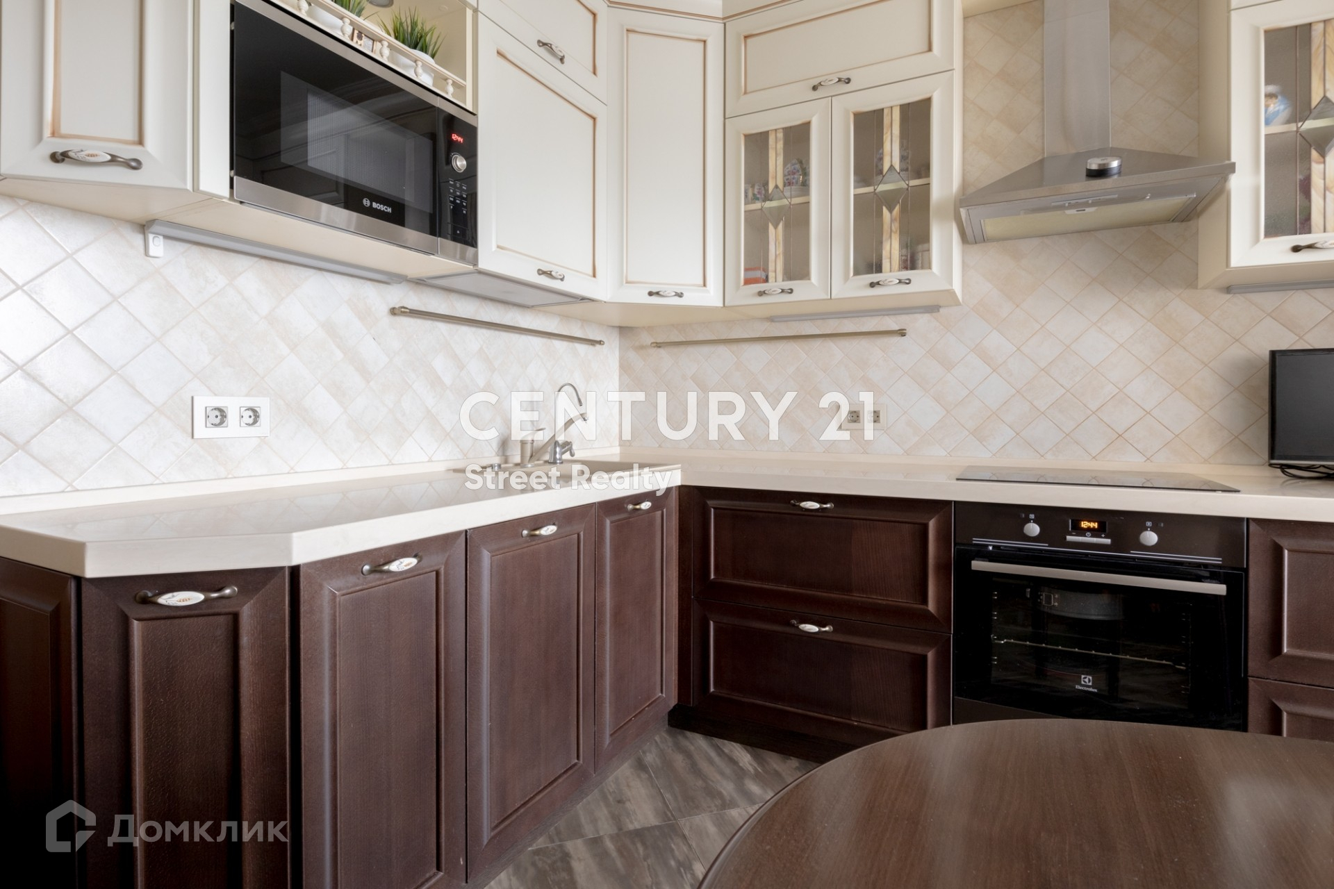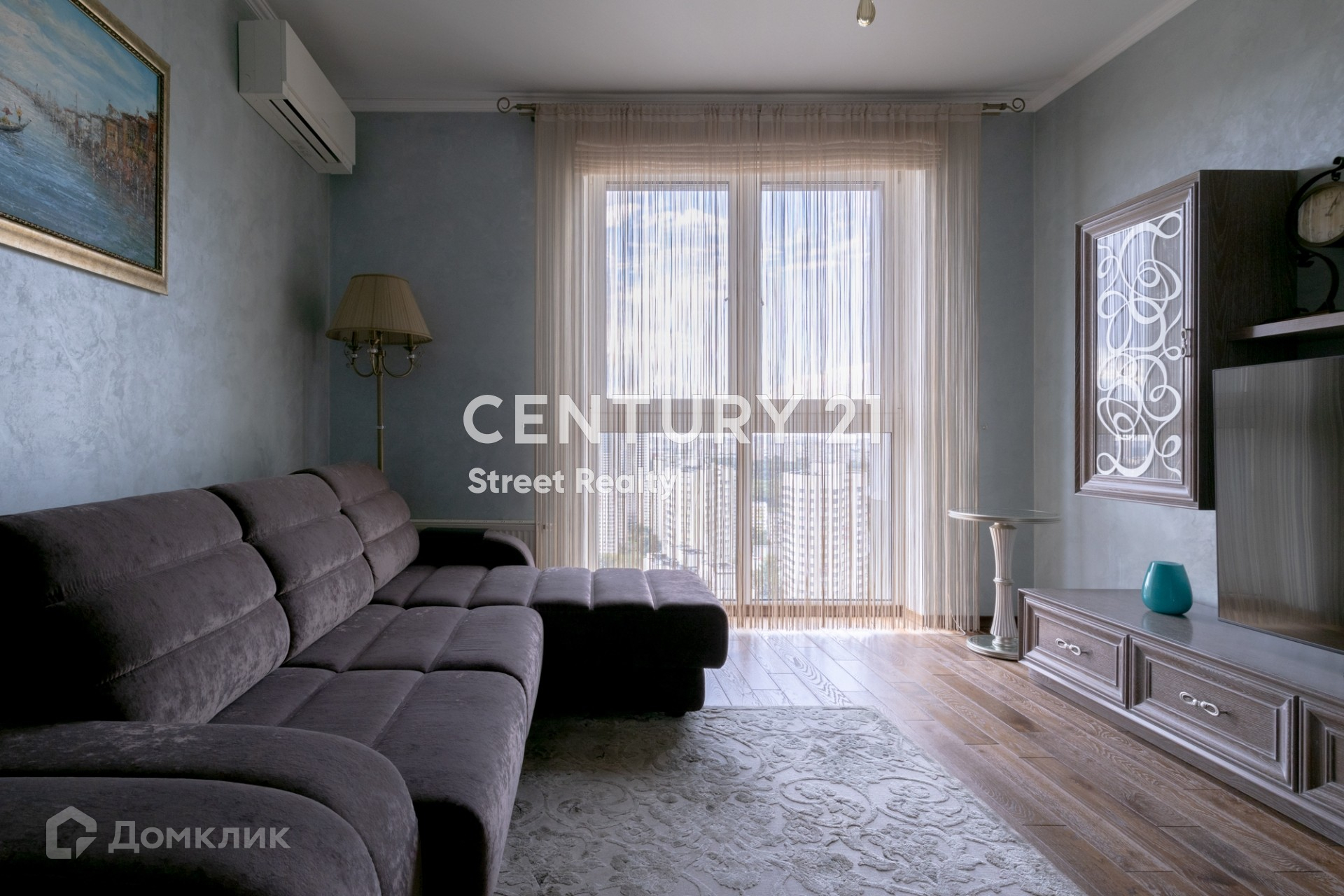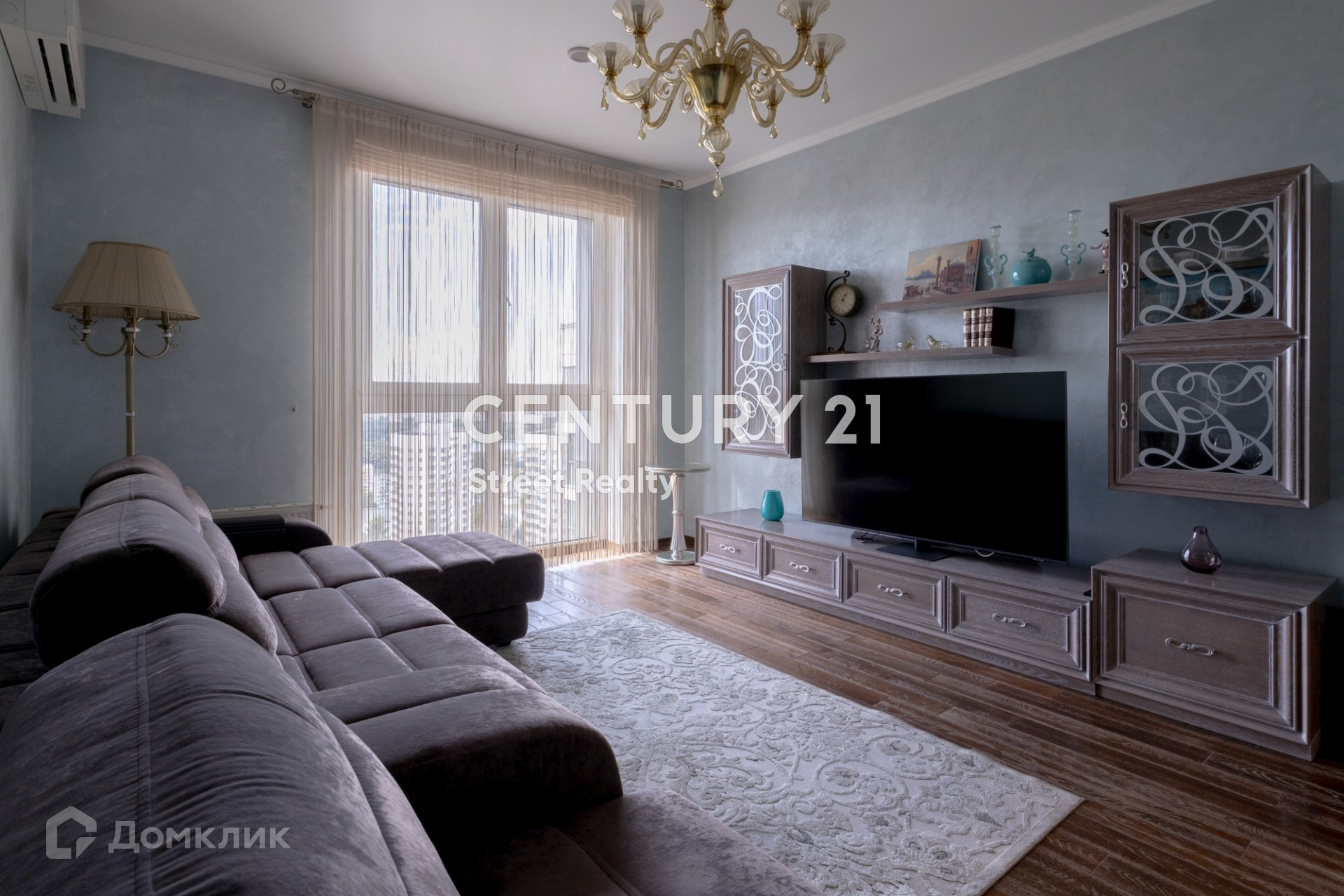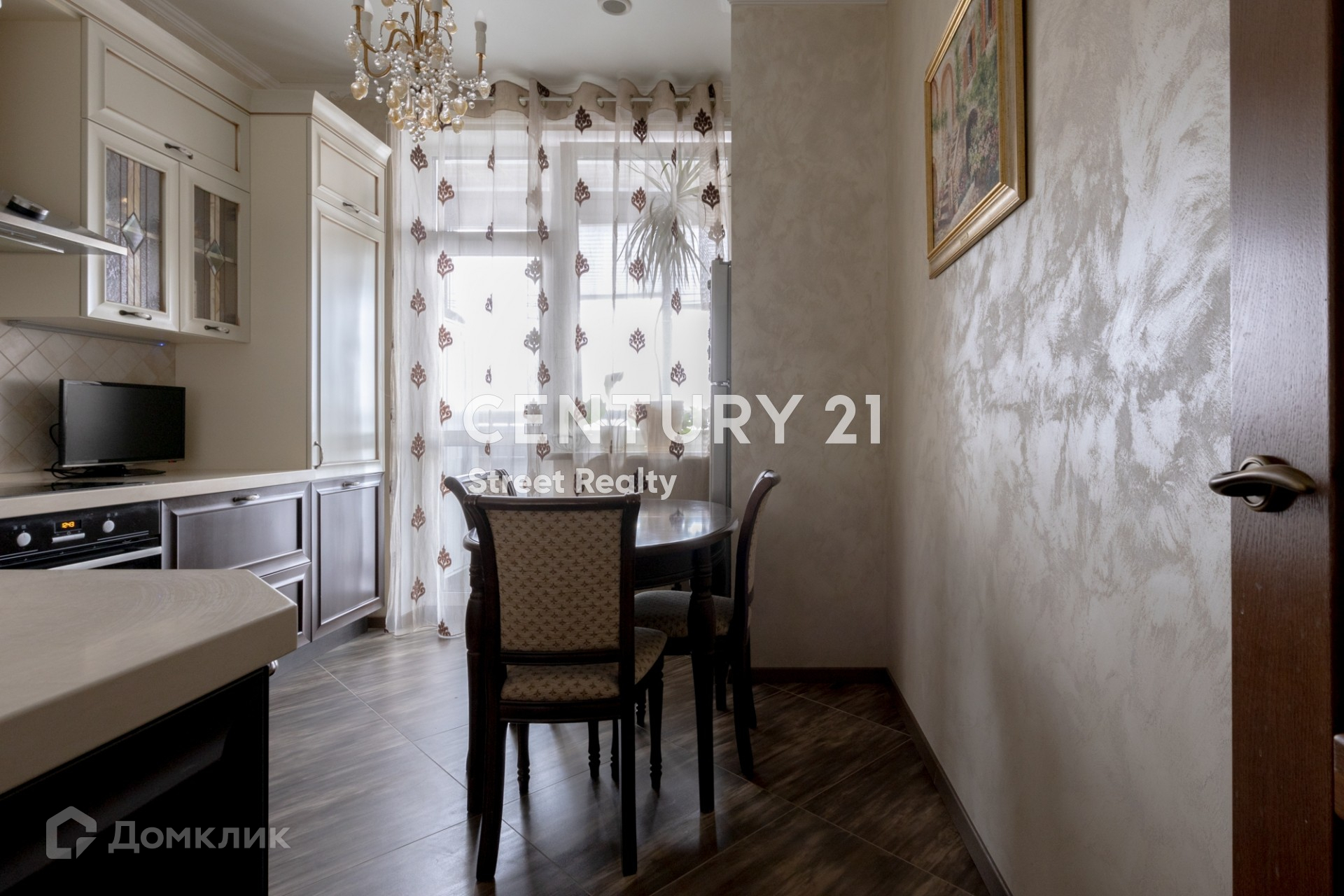 На полу паркет, изготовленный по индивидуальному заказу. В квартире установлены кондиционеры Mitsubishi. Кухня полностью оборудована встроенной бытовой техникой европейских производителей.