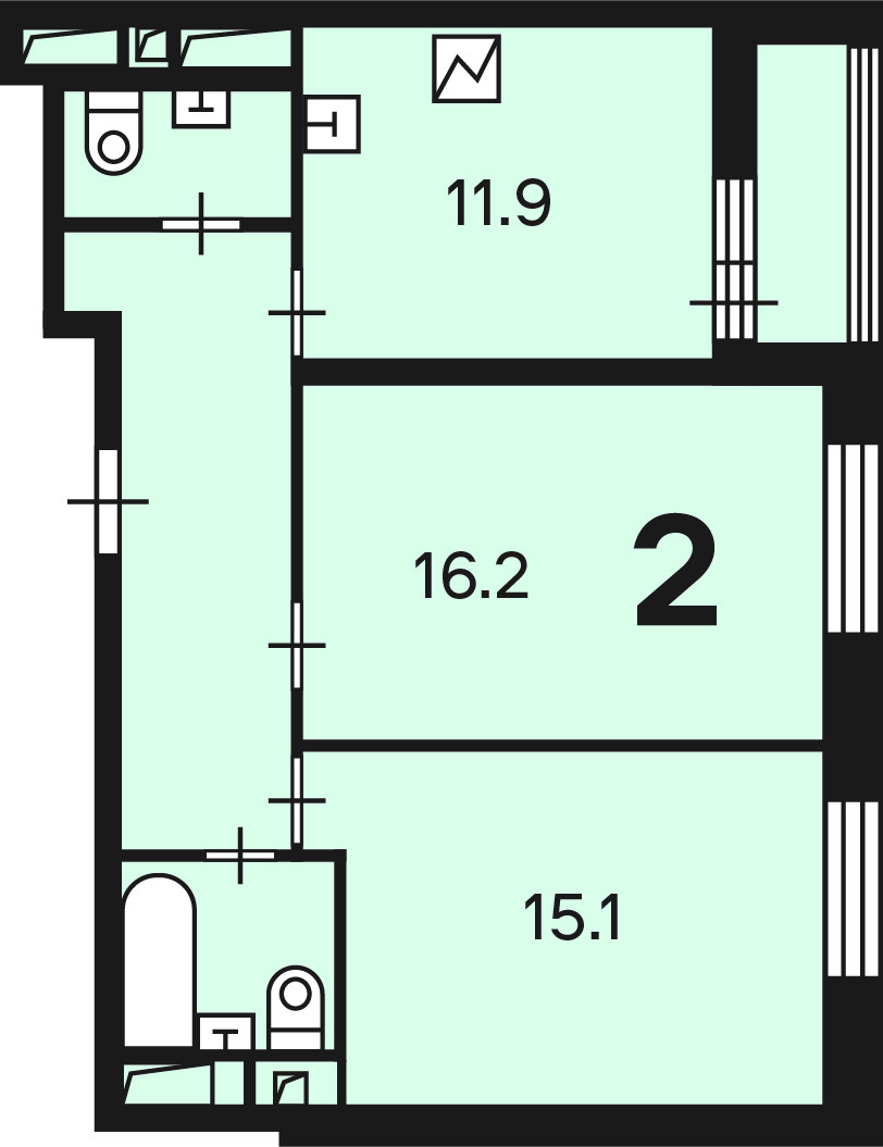 Количество комнат 2