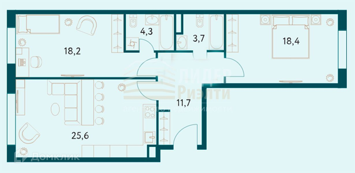 Оптимальная и функциональная планировка:- Просторная кухня-гостиная площадью 25,6 кв.м., созданная для теплых семейных вечеров и встреч с друзьями- Две изолированные просторные спальни площадью 18,2 и 18,4 кв.м., идеальные для комфортного отдыха.- Два совмещенных санузла для вашего комфорта и удобства.- Просторный холл, создающий ощущение уюта с порога.Жилой комплекс "Настоящее" — это продуманное до мелочей пространство для жизни, с респектабельными входными группами, детскими игровыми площадками и зонами отдыха на закрытой охраняемой территории. Безопасность вашей семьи гарантируется круглосуточной охраной, а подземный паркинг и гостевая наземная парковка обеспечивают удобство для жителей и их гостей.