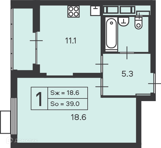 Общая площадь 39 м2