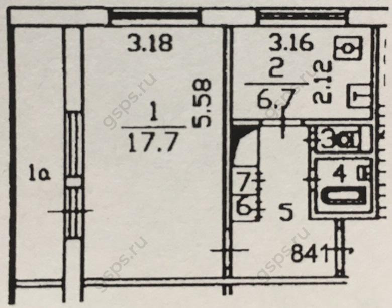 Жилая площадь 17.7 м2