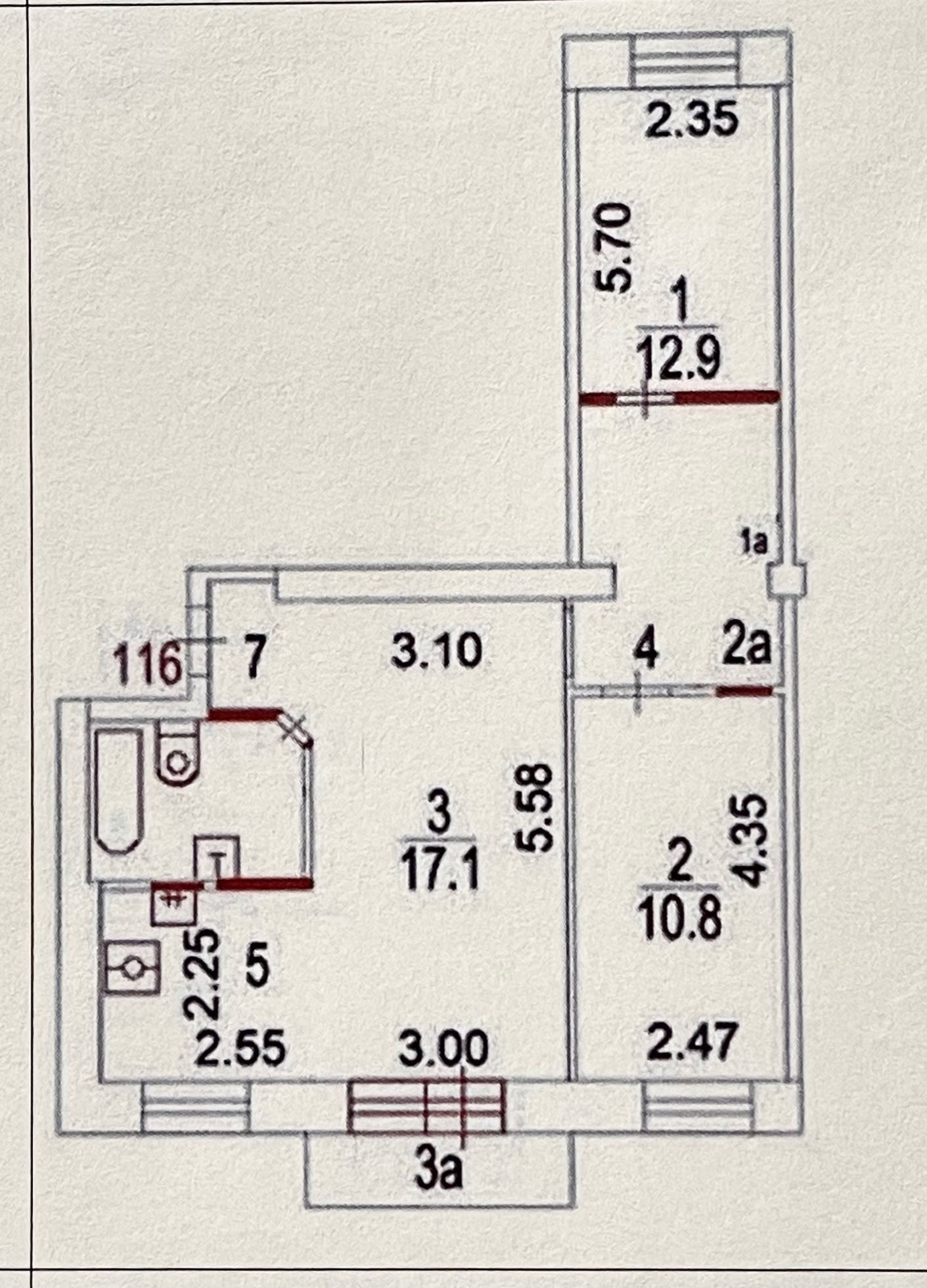 Балкон, лоджия 1 балкон