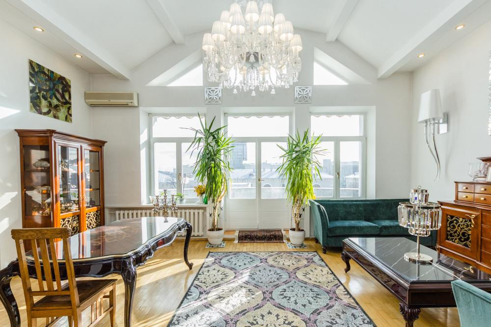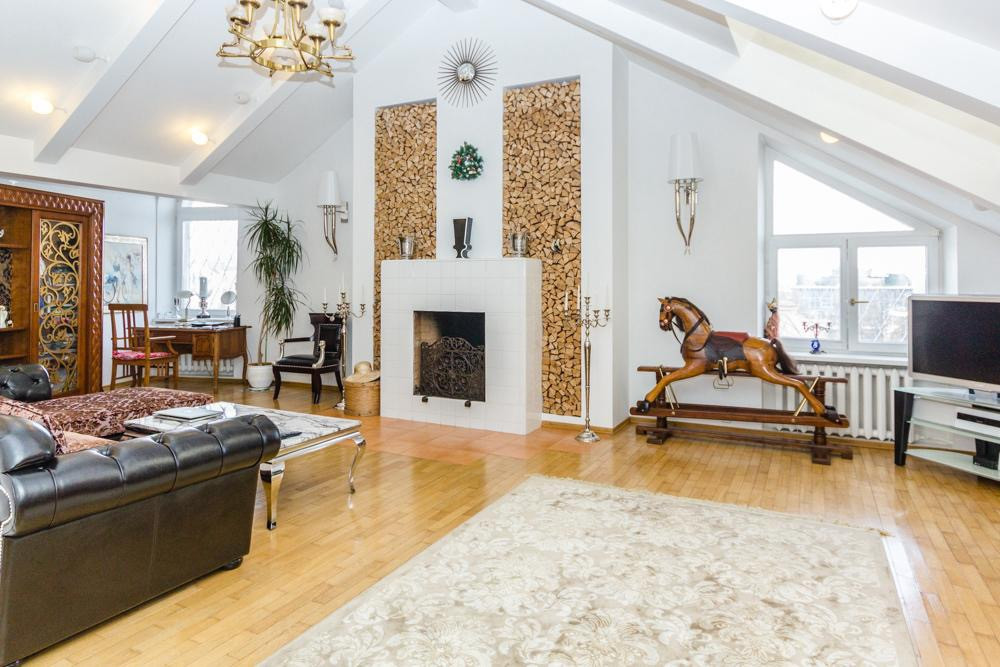 Светлый пентхаус на Остоженке занимает весь этаж в клубном доме на десять квартир.Высота потолков 4,5м,три спальни,два с/у,каминный зал,гостиная,балкон.Уникальный вид на зеленую зону.Машиноместо в закрытом дворе и в подземном паркинге.