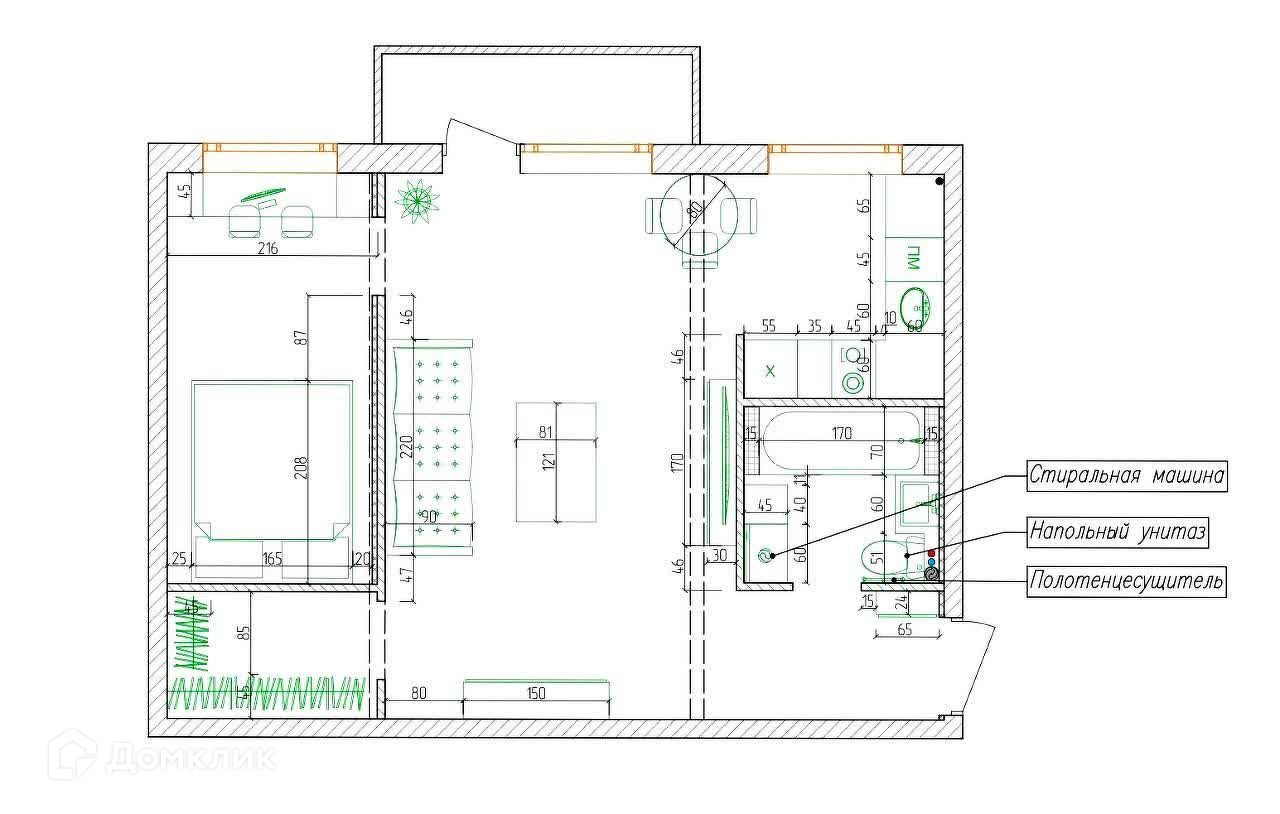Общая площадь 44 м2