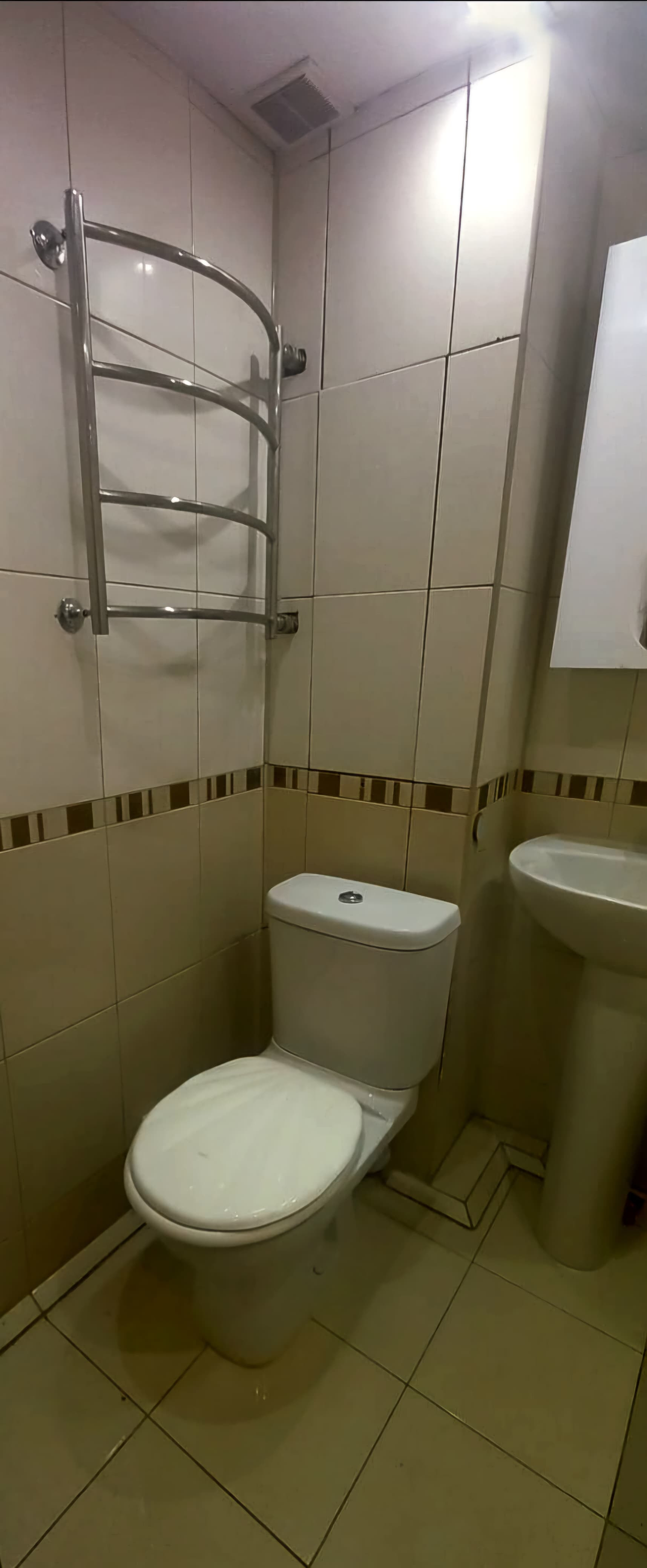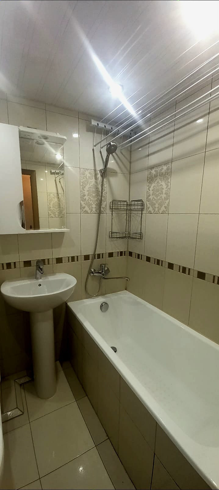 В ванной комнате импортная плитка (пол и стены), потолок-металлопластик. Сантехника импортная.