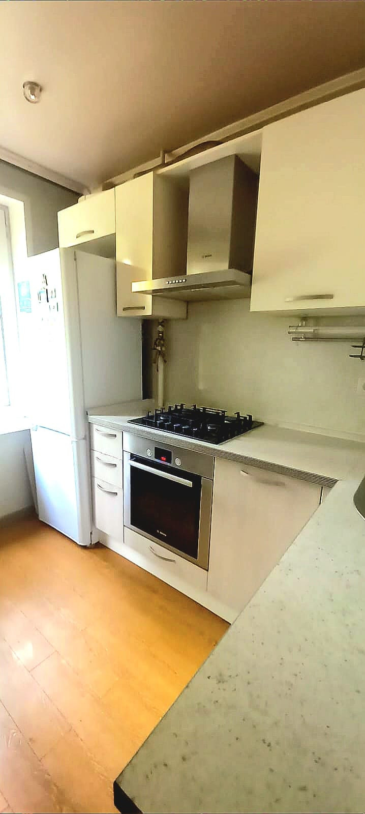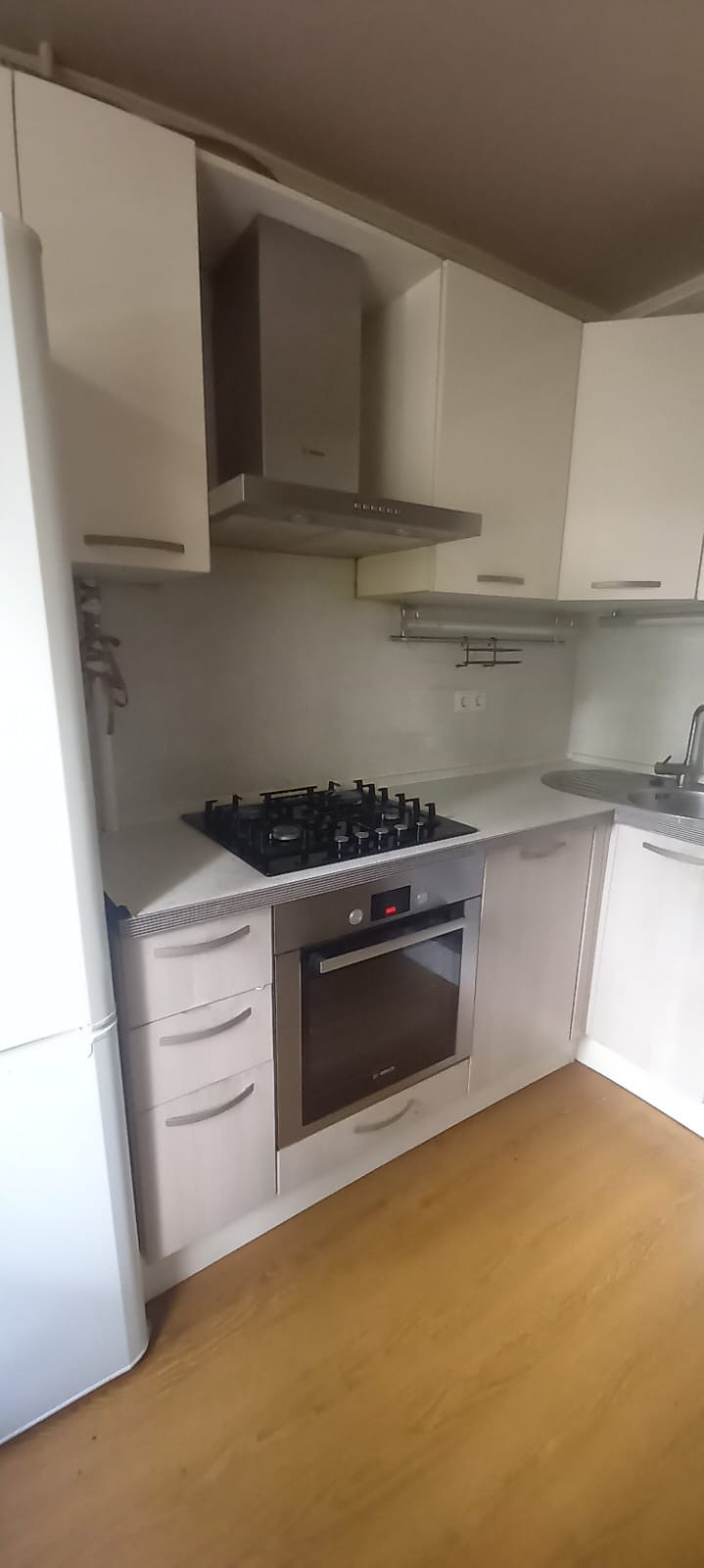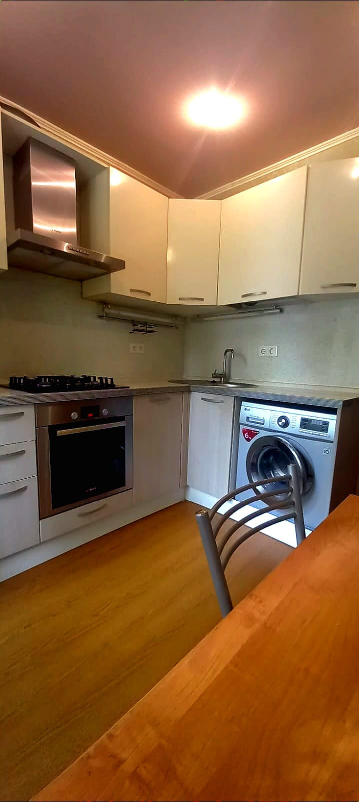 Кухня встроенная, бытовая техника импортная (фирма Bosch): посудомоечная машина,варочная плита,духовой шкаф,вытяжка. Стиральная машина LG.