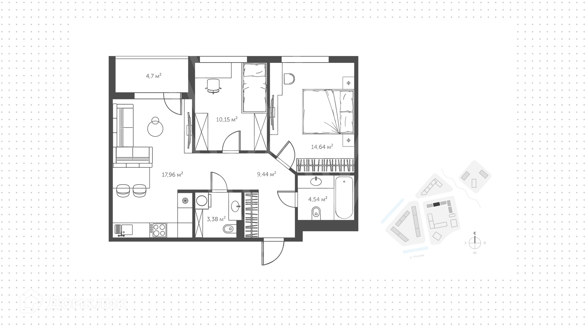 Общая площадь 64.8 м2