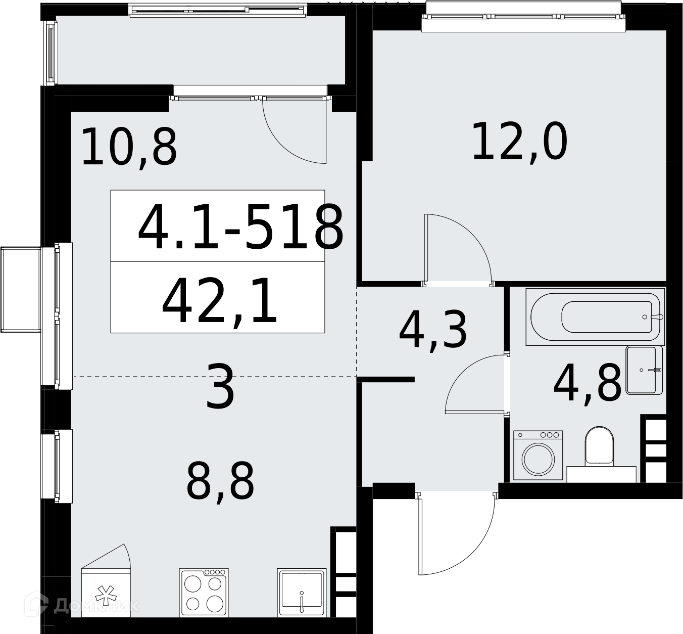 Общая площадь 42.1 м2