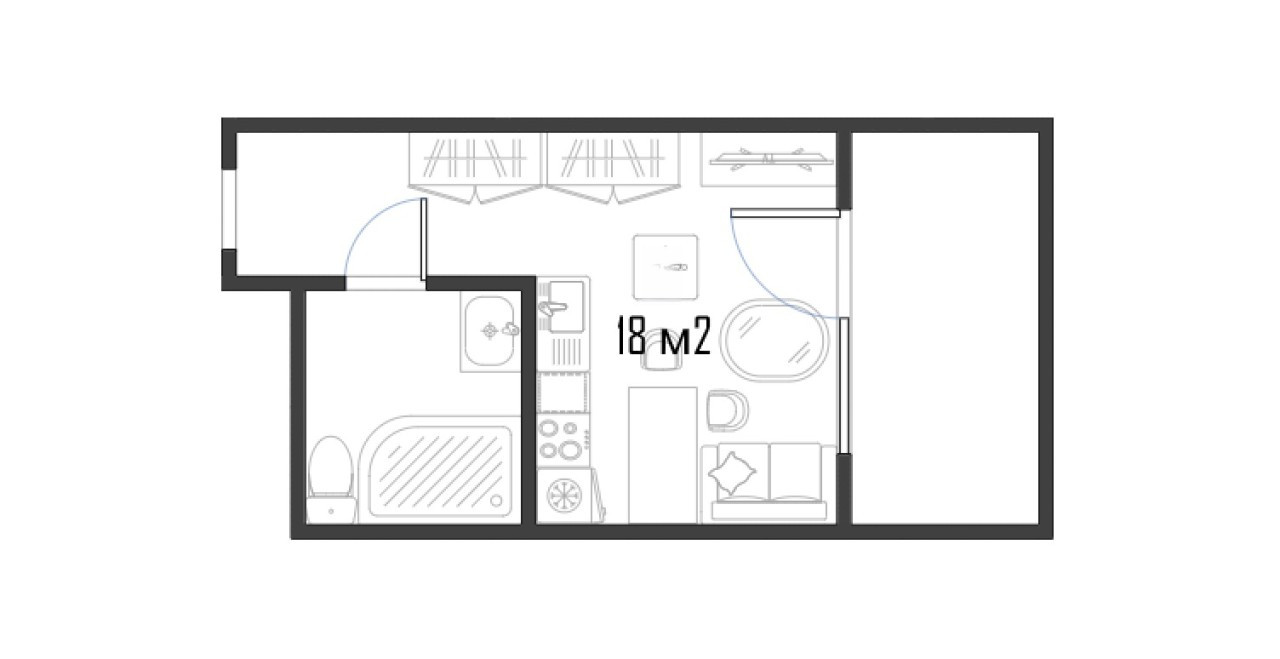 Общая площадь 18 м2
