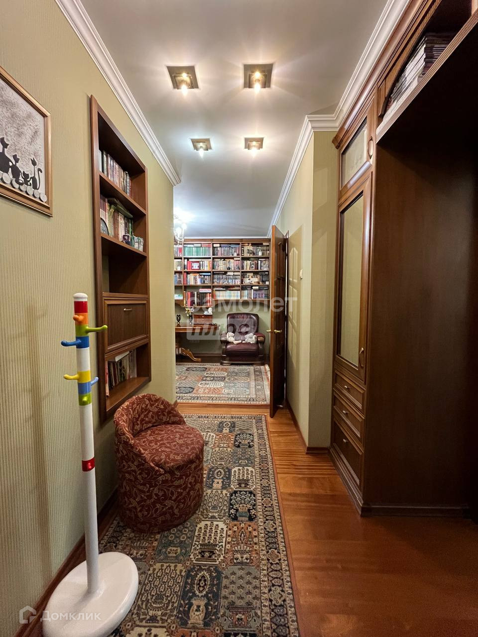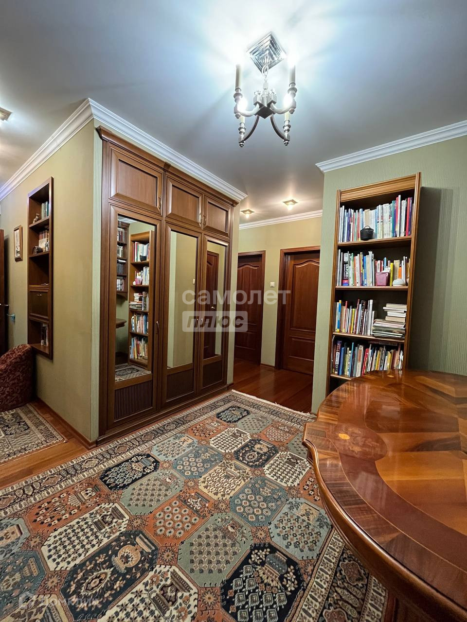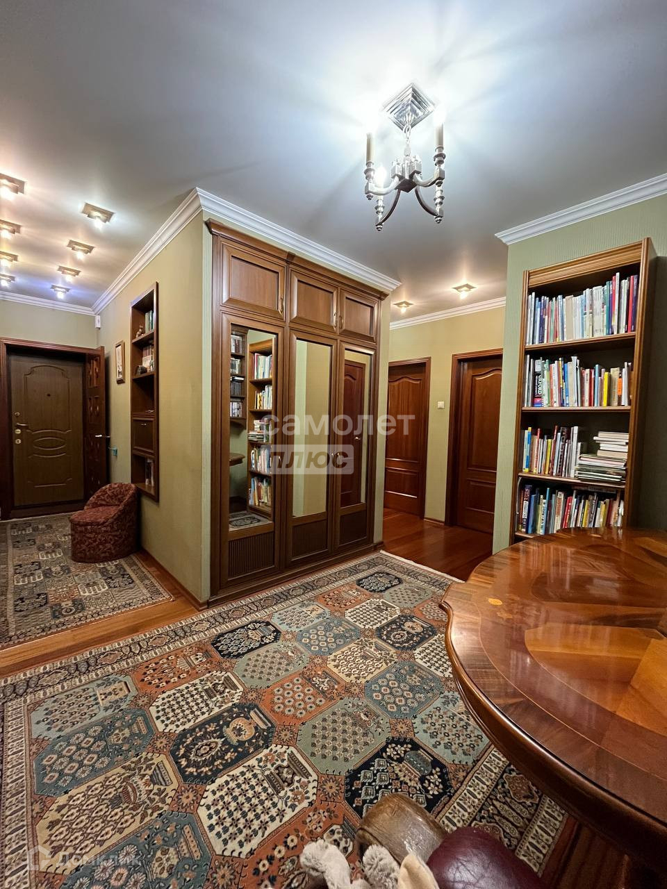 На этаже две квартиры, большая закрытая лестничная площадка с балконом во двор. В доме высокий уровень шумоизоляции, очень тихо. Планировка квартиры удобной повышенной комфортности, шумоизолирующие стеклопакеты. Комнаты изолированные, площадью 14, 16 и 20 кв. м., встроенные итальянские шкафы, вместительная кладовая. В коридоре размещена библиотека. Два балкона застеклены и выходят на обе стороны дома.
