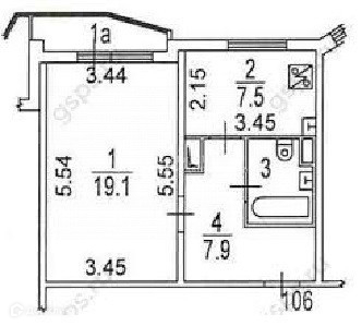 Жилая площадь 19.1 м2