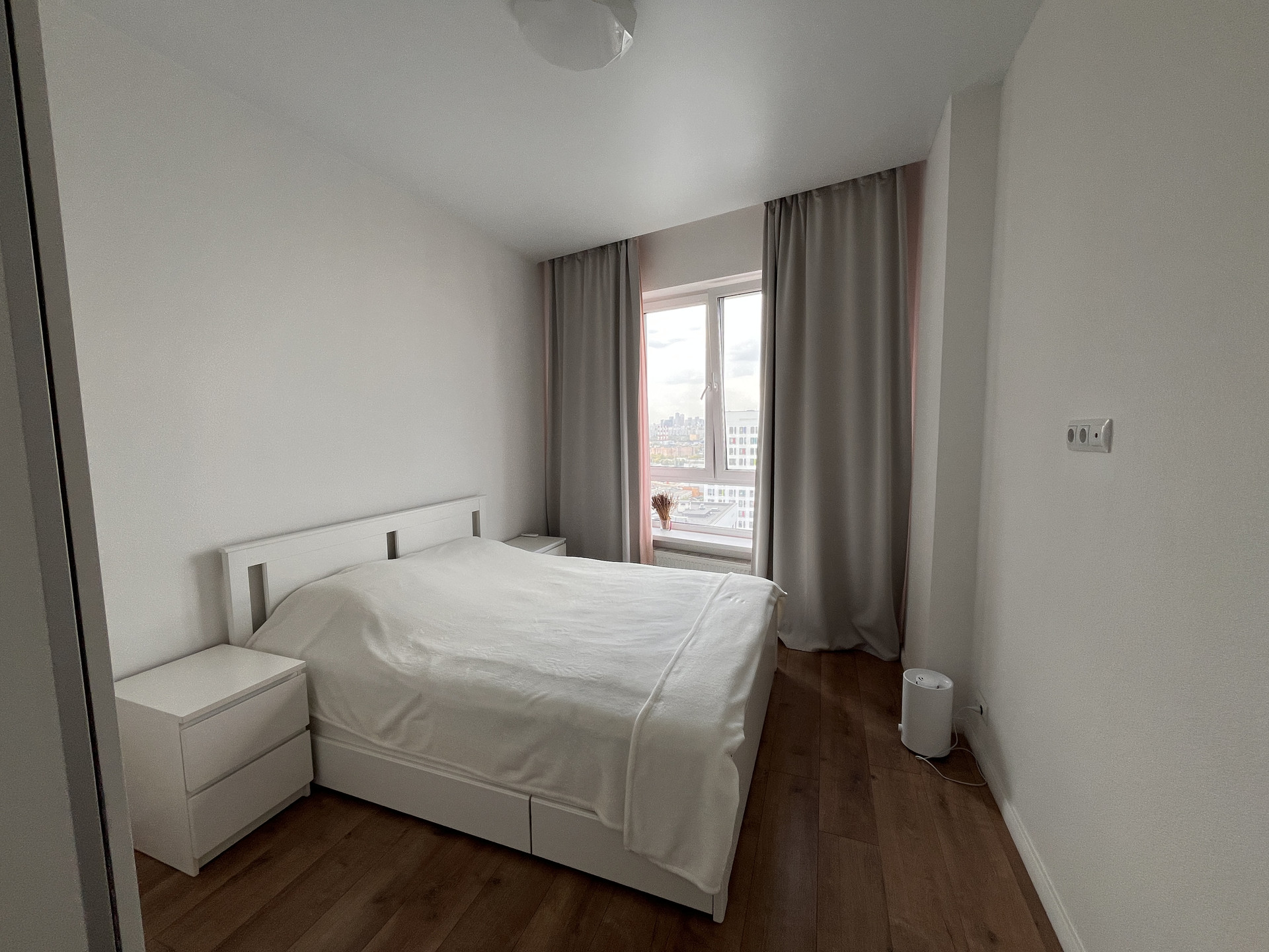 Планировка "евродвушка". Просторная и светлая кухня-гостиная, уютная спальня, санузел с увеличенной продуманной нишей для хранения хоз принадлежностей. Качественный ремонт (улучшили после застройщика). Встроенная кухня, мебель, бытовая техника абсолютно всё остается новому собственнику.