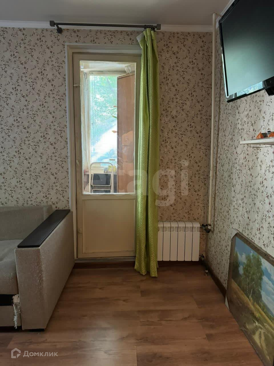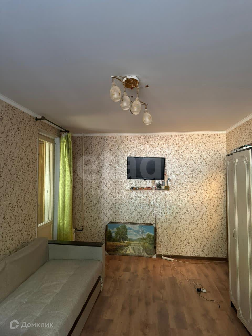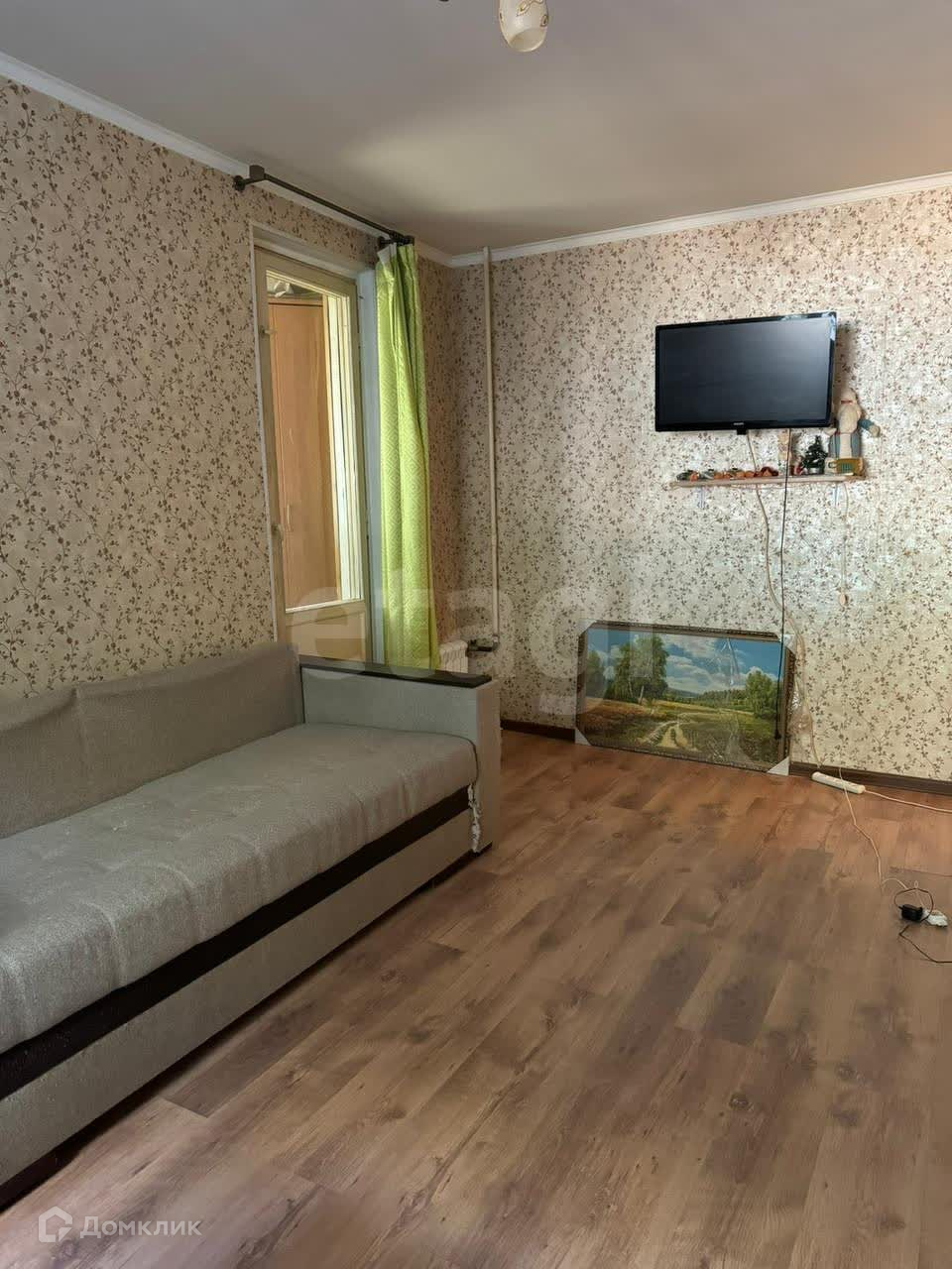- Лоджия по длине на всю комнату застекленная и обитая внутри деревом: 6 кв.м