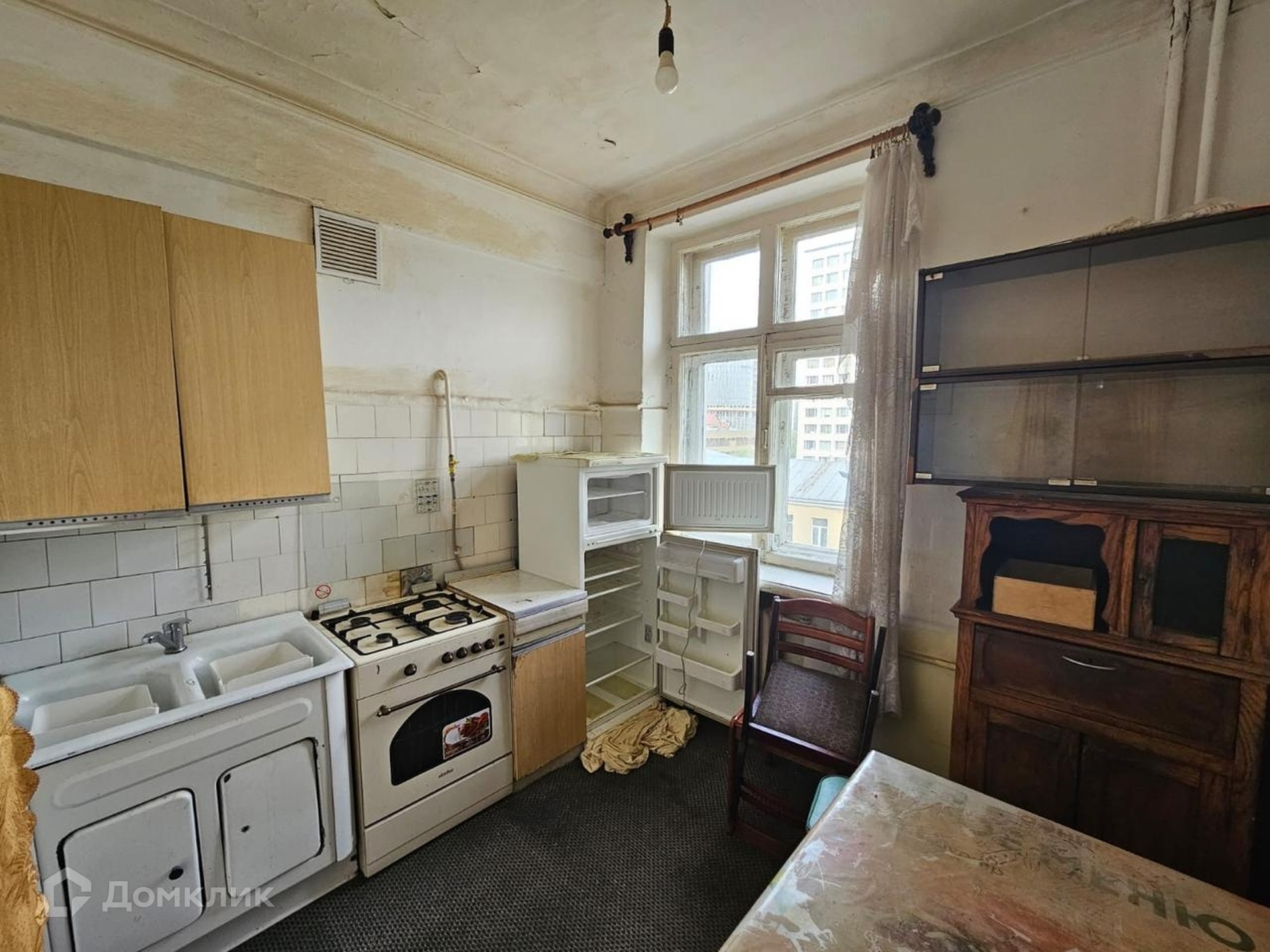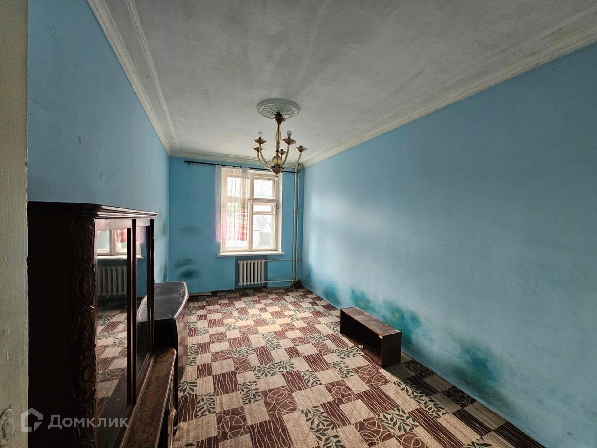 Общая площадь квартиры 46.7 кв. м, кухня 7 кв. м. Без ремонта. На высоких потолках 3м сохранилась историческая лепнина. Дом без лифта, чистый ухоженный подъезд.