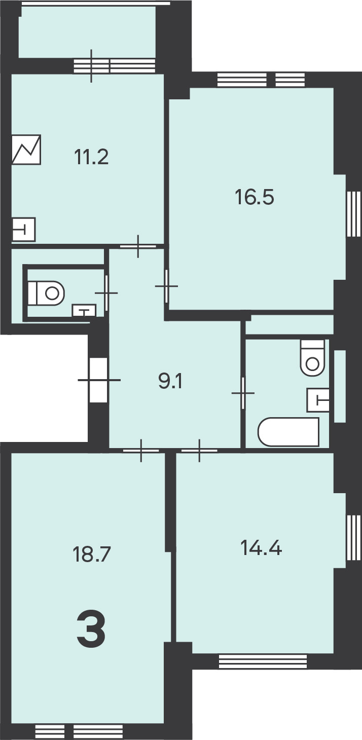 Количество комнат 3