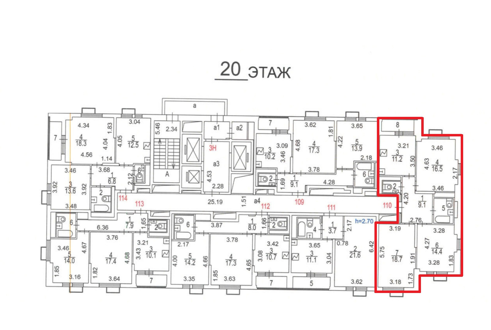 Высота потолков 2.7 м